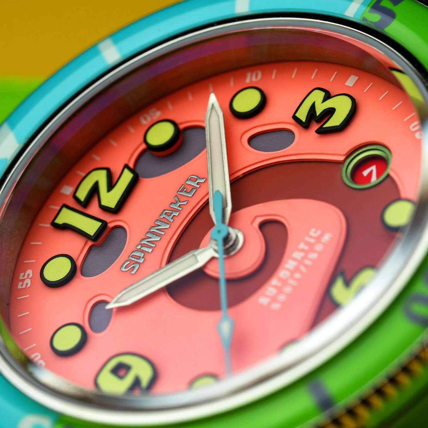 Мужские механические часы с автоподзаводом Spinnaker — это лимитированный и стильный аксессуар. Корпус диаметром 43 мм выполнен из нержавеющей стали. БезельБезельВнешний ободок, закрепляющий стекло. В спортивных часах так называется поворотное кольцо с делениями на циферблате, выполняет роль таймера – замеряет отрезки времени на шкале. Неподвижный безель – элемент декора. Однонаправленно вращающийся безель на дайверских часах позволяет фиксировать моменты погружения и выныривания на поверхность. с IP-покрытиемIP-покрытиеМетод ионного напыления. Демонстрирует повышенную устойчивость к истиранию, окислению и химическим веществам. Под воздействием высокого давления и температуры около 1500°C молекулы металла надёжно соединяются с частицами корпуса часов.. Циферблат оформлен цифрами, точками и стрелками. Стрелки и метки с люминесцентным покрытиемЛюминесцентное покрытиеПозволяет считывать показания времени в темноте. Производители наносят на стрелки, часовые индексы, безель или поверхность циферблата светонакопительный состав, дающий холодное свечение., обеспечивающим хорошую читаемость в темноте. Циферблат защищён сапфировым стекломСапфировое стеклоПрочный и надёжный материал из кристалла сапфира синтетического происхождения, характеризующийся особой твёрдостью и устойчивостью к царапинам и повреждениям. с антибликовым покрытиемАнтибликовое покрытиеСлой оксида металла в 0,13-0,3 микрон, благодаря которому стекло часов не бликует и не отражает свет. Антибликовое покрытие уменьшает отражение света в 10 раз, обеспечивая отличную читаемость показателей циферблата.. Механизм — автоматический калибр Seiko NH35 (24 камня, частота 21 600 полуколебаний в час) с запасом до 41 часа. Прозрачная задняя крышка позволяет наблюдать за работой механизма. Часы оснащены зелёным силиконовым ремешком шириной 22 мм на стандартной пряжке. Водонепроницаемость 150 м позволяет использовать часы для плавания и дайвинга. Идеальный выбор для тех, кто ценит качество и нестандартный дизайн.
