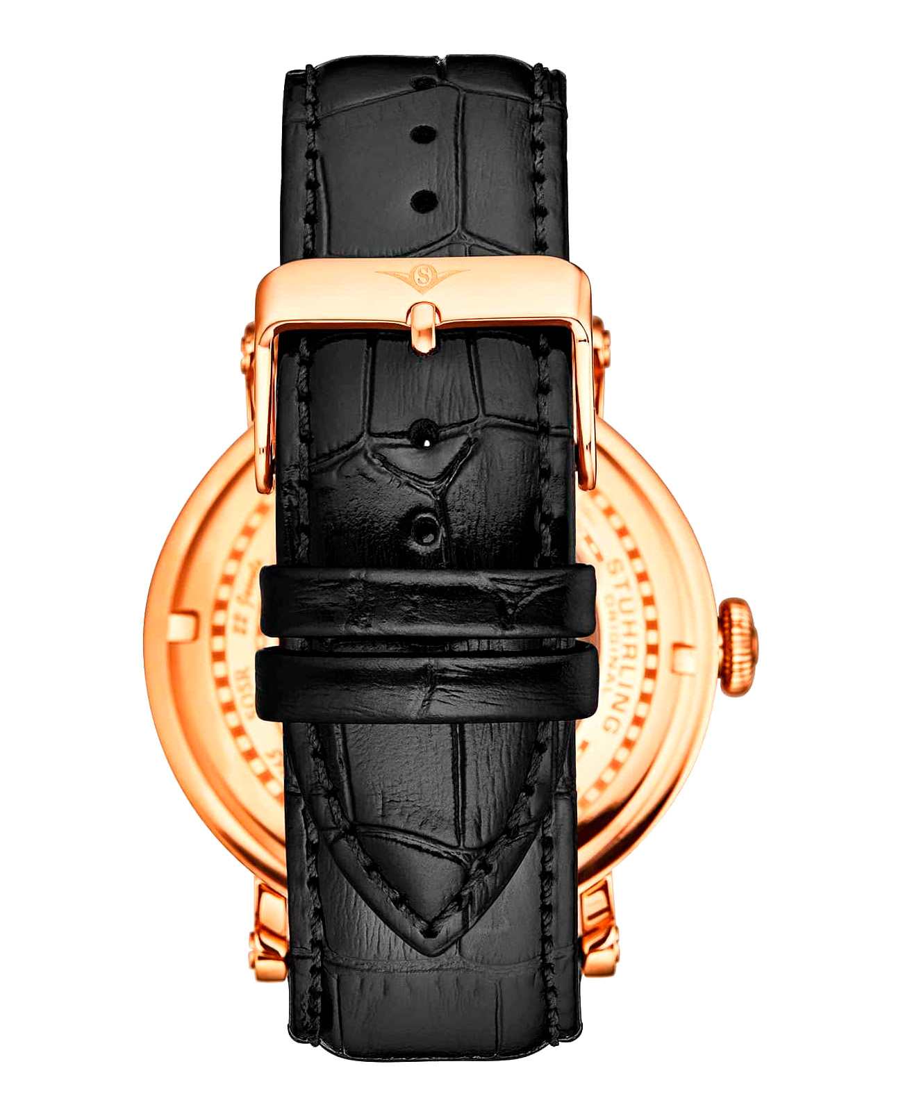 Мужские наручные часы Stuhrling Original 1015.04 — это уникальное сочетание классического стиля и современных технологий, предназначенное для ценителей точности и элегантности . Модель оснащена механическим механизмом с автоподзаводом, что обеспечивает высокую точность хода без необходимости ручного завода . Корпус часов диаметром 47 мм изготовлен из нержавеющей стали с PVD-покрытиемPVDУльтратонкое покрытие наносится в технике вакуумного напыления, сочетает в себе нитрид титана особой прочности со слоем золота или оксида хрома. Несёт в себе декоративную или защитную функцию., а его защиту обеспечивает особо прочное стекло KrysternaKrysternaKrysterna — инновационное стекло для наручных часов. Благодаря уникальной структуре, Krysterna объединяет ключевые преимущества двух материалов: твердость сапфира, защищающую от царапин, и гибкость минерального стекла, обеспечивающую устойчивость к деформациям. Такая комбинация делает его идеальным решением для часов, подверженных экстремальным нагрузкам, сохраняя при этом оптическую прозрачность.. Этот материал, используемый в производстве очковых линз высшей категории, отличается повышенной устойчивостью к царапинам и механическим повреждениям . Циферблат выполнен в стиле , что позволяет наблюдать за работой внутреннего механизма и подчеркивает сложность инженерного решения. Такой дизайн делает модель не только функциональной, но и стильной, привлекая внимание ценителей сложных технических решений . Часы обладают водонепроницаемостью до 50 метров (5 атмосфер), что позволяет использовать их в повседневных условиях, включая контакт с водой, например, при мытье рук или дожде . Заводная головка с системой завинчивания гарантирует дополнительную защиту механизма от внешних воздействий. Водонепроницаемость и надежный механизм делают эту модель идеальным выбором для тех, кто ценит как элегантность, так и практичность в повседневной жизни.