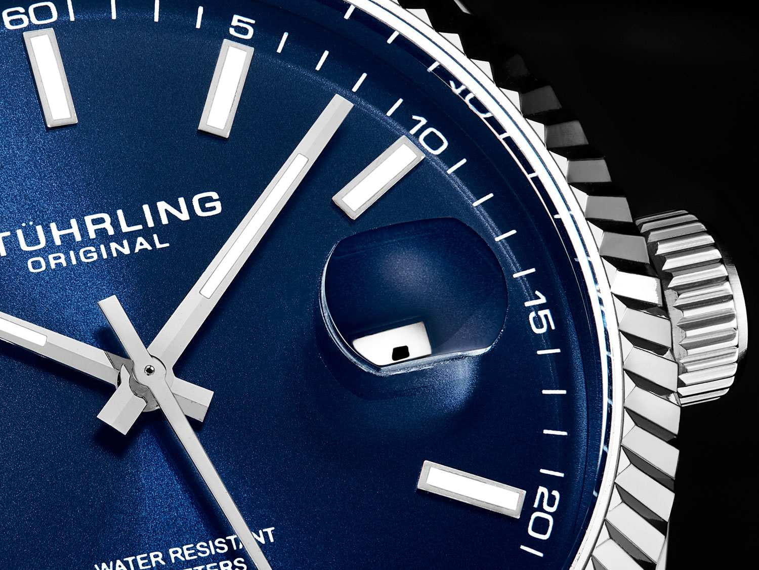 Stuhrling 3935.2 — элегантные мужские часы, объединяющие строгую классику и современную функциональность. Корпус из нержавеющей стали создают ощущение монолитной надёжности, а глубокий циферблат придаёт модели выразительность и характер. Стальной браслет на раскладной застёжкеРаскладная застёжкаТакой тип застёжки используется только на браслетах из металла. Она никогда не раскрывается полностью, происходит разделение на 2 и более частей. Раскладывающая застёжка снизит вероятность потери часов к минимуму. обеспечивает комфорт. Крупные метки и стрелки с люминесцентным покрытиемЛюминесцентное покрытиеПозволяет считывать показания времени в темноте. Производители наносят на стрелки, часовые индексы, безель или поверхность циферблата светонакопительный состав, дающий холодное свечение. обеспечивают идеальную читаемость даже в темноте. На позиции «3 часов» расположено аккуратное окно даты, подчёркивающее симметрию дизайна. Прочное стекло Krysterna защищает циферблат от царапин, а надёжный кварцевый механизм гарантирует стабильную точность. Stuhrling — выбор уверенного мужчины, ценящего сочетание функциональности, лаконичного дизайна и безупречной отделки.