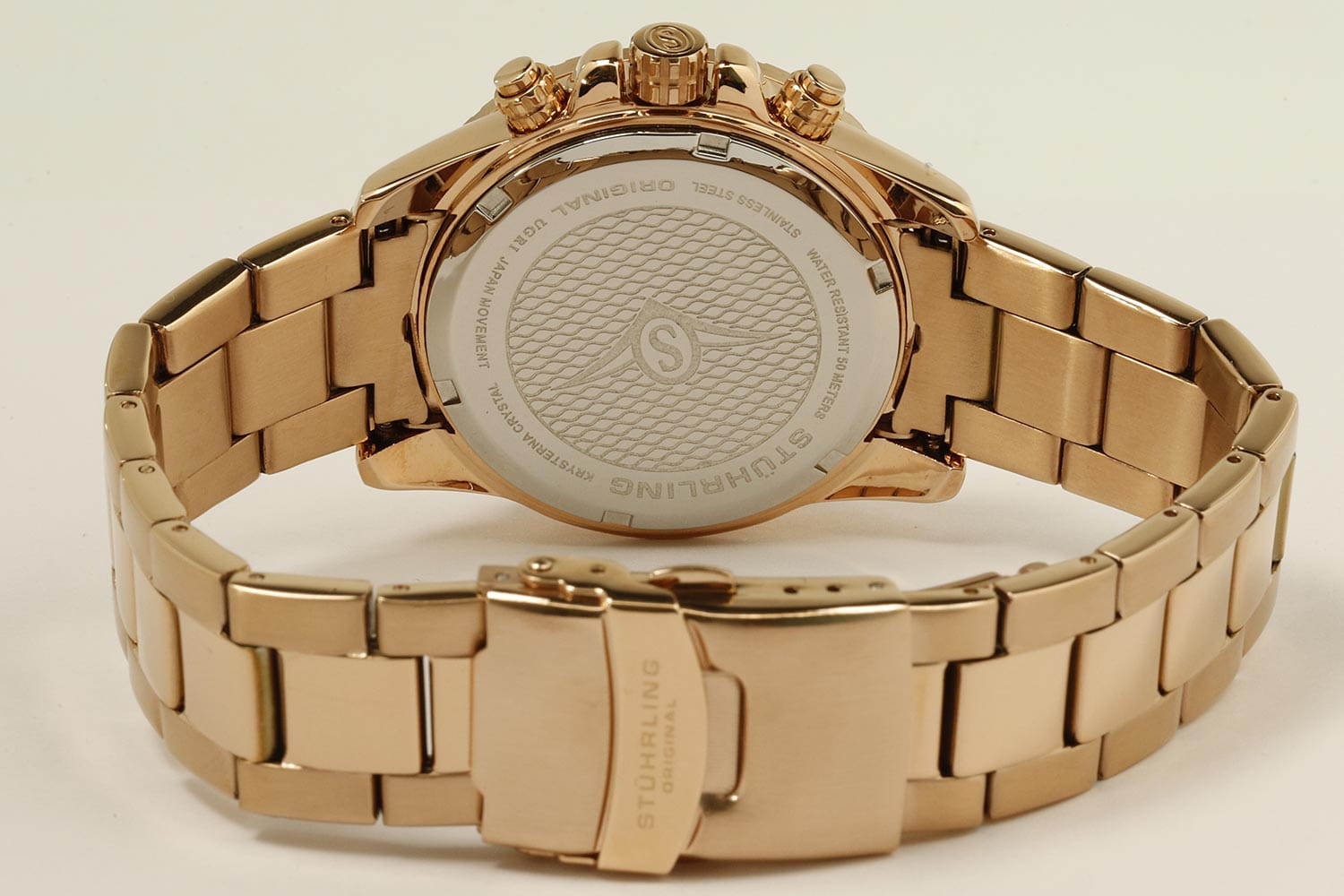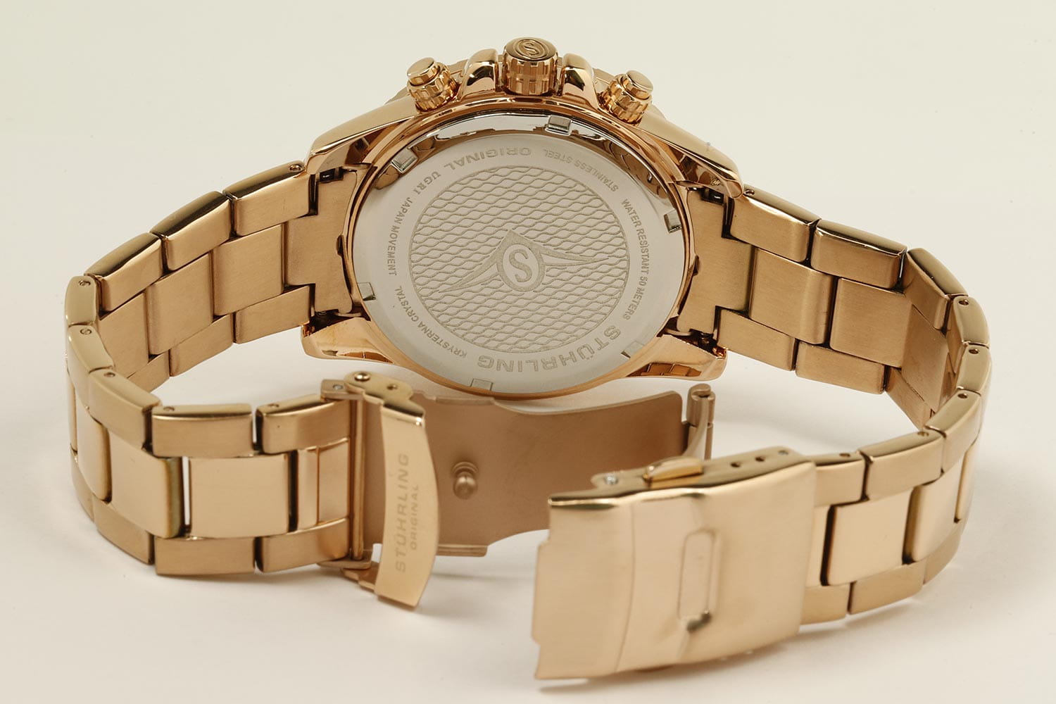 Stuhrling 3957.4 — мощные мужские часы с выразительным спортивным характером и динамичным дизайном. Корпус из нержавеющей стали с PVD-покрытиемPVDУльтратонкое покрытие наносится в технике вакуумного напыления, сочетает в себе нитрид титана особой прочности со слоем золота или оксида хрома. Несёт в себе декоративную или защитную функцию. гармонично сочетается с циферблатом, оформленным рельефным узором и контрастными счётчиками хронографаХронографФункция позволяет измерять отрезки времени с особой точностью: часы, минуты, секунды. Верным признаком хронографа является наличие на циферблате 3 дополнительных окошек-счётчиков.. Широкий безельБезельВнешний ободок, закрепляющий стекло. В спортивных часах так называется поворотное кольцо с делениями на циферблате, выполняет роль таймера – замеряет отрезки времени на шкале. Неподвижный безель – элемент декора. Однонаправленно вращающийся безель на дайверских часах позволяет фиксировать моменты погружения и выныривания на поверхность. с PVD-покрытиемPVDУльтратонкое покрытие наносится в технике вакуумного напыления, сочетает в себе нитрид титана особой прочности со слоем золота или оксида хрома. Несёт в себе декоративную или защитную функцию. подчёркивает брутальный стиль модели, а стрелки и метки с люминесцентным покрытиемЛюминесцентное покрытиеПозволяет считывать показания времени в темноте. Производители наносят на стрелки, часовые индексы, безель или поверхность циферблата светонакопительный состав, дающий холодное свечение. обеспечивают идеальную читаемость в любых условиях. Прочное стекло KrysternaKrysternaKrysterna — инновационное стекло для наручных часов. Благодаря уникальной структуре, Krysterna объединяет ключевые преимущества двух материалов: твердость сапфира, защищающую от царапин, и гибкость минерального стекла, обеспечивающую устойчивость к деформациям. Такая комбинация делает его идеальным решением для часов, подверженных экстремальным нагрузкам, сохраняя при этом оптическую прозрачность. устойчиво к царапинам, сохраняя прозрачность и блеск. Завершает образ стальной браслет с PVD-покрытиемPVDУльтратонкое покрытие наносится в технике вакуумного напыления, сочетает в себе нитрид титана особой прочности со слоем золота или оксида хрома. Несёт в себе декоративную или защитную функцию. и раскладной застёжкойРаскладная застёжкаТакой тип застёжки используется только на браслетах из металла. Она никогда не раскрывается полностью, происходит разделение на 2 и более частей. Раскладывающая застёжка снизит вероятность потери часов к минимуму., гарантирующий комфорт и надёжную фиксацию. Stuhrling — стильная и функциональная модель для уверенных мужчин, ценящих точность и энергию в каждой детали.