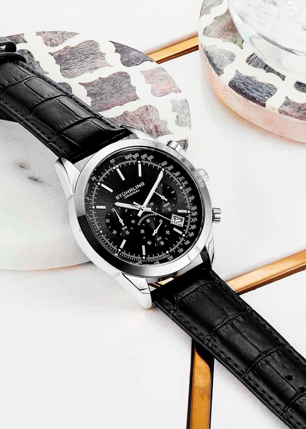 Stuhrling 3975L.1 — стильные мужские часы с выразительным пилотским дизайном и мощным функционалом. Классический циферблат дополнен контрастными счётчиками хронографаХронографФункция позволяет измерять отрезки времени с особой точностью: часы, минуты, секунды. Верным признаком хронографа является наличие на циферблате 3 дополнительных окошек-счётчиков., тахиметрической шкалой по ободу и аккуратным окошком даты, подчёркивающими технический характер модели. Корпус из нержавеющей стали придаёт часам надёжность и современный блеск, а стекло KrysternaKrysternaKrysterna — инновационное стекло для наручных часов. Благодаря уникальной структуре, Krysterna объединяет ключевые преимущества двух материалов: твердость сапфира, защищающую от царапин, и гибкость минерального стекла, обеспечивающую устойчивость к деформациям. Такая комбинация делает его идеальным решением для часов, подверженных экстремальным нагрузкам, сохраняя при этом оптическую прозрачность. защищает поверхность от царапин и сохраняет кристальную прозрачность. Кожаный ремень с классической текстурой аллигатора и стандартной застежкой, обеспечивает комфорт и элегантную посадку на запястье. Stuhrling — гармония силы, точности и изысканного стиля для мужчин, ценящих уверенность и безупречный вкус.