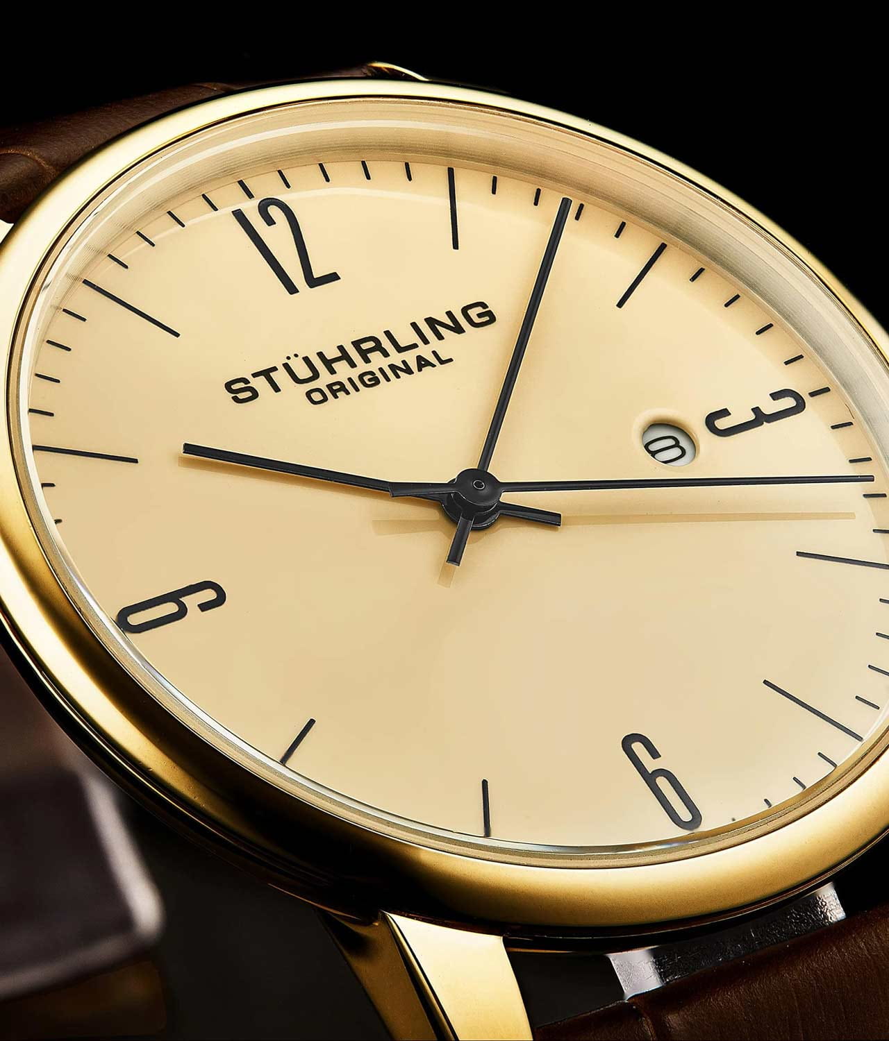 Stuhrling 3997A.8 — выразительные мужские часы с уникальным дизайнерским решением. Глубокий циферблат придаёт модели эффектный и современный вид. Корпус из нержавеющей стали с PVD-покрытиемPVDУльтратонкое покрытие наносится в технике вакуумного напыления, сочетает в себе нитрид титана особой прочности со слоем золота или оксида хрома. Несёт в себе декоративную или защитную функцию. отличается аккуратной полировкой и плавными формами, подчёркивающими элегантность классического стиля. Прочное стекло KrysternaKrysternaKrysterna — инновационное стекло для наручных часов. Благодаря уникальной структуре, Krysterna объединяет ключевые преимущества двух материалов: твердость сапфира, защищающую от царапин, и гибкость минерального стекла, обеспечивающую устойчивость к деформациям. Такая комбинация делает его идеальным решением для часов, подверженных экстремальным нагрузкам, сохраняя при этом оптическую прозрачность. защищает поверхность от царапин, сохраняя прозрачность и глубину цвета. Ремень из натуральной кожи на стандартной застежке, обеспечивает комфорт и надёжность при ежедневном ношении. Stuhrling — это гармония механической точности и выразительного дизайна, созданная для мужчин, ценящих стиль и совершенство деталей.