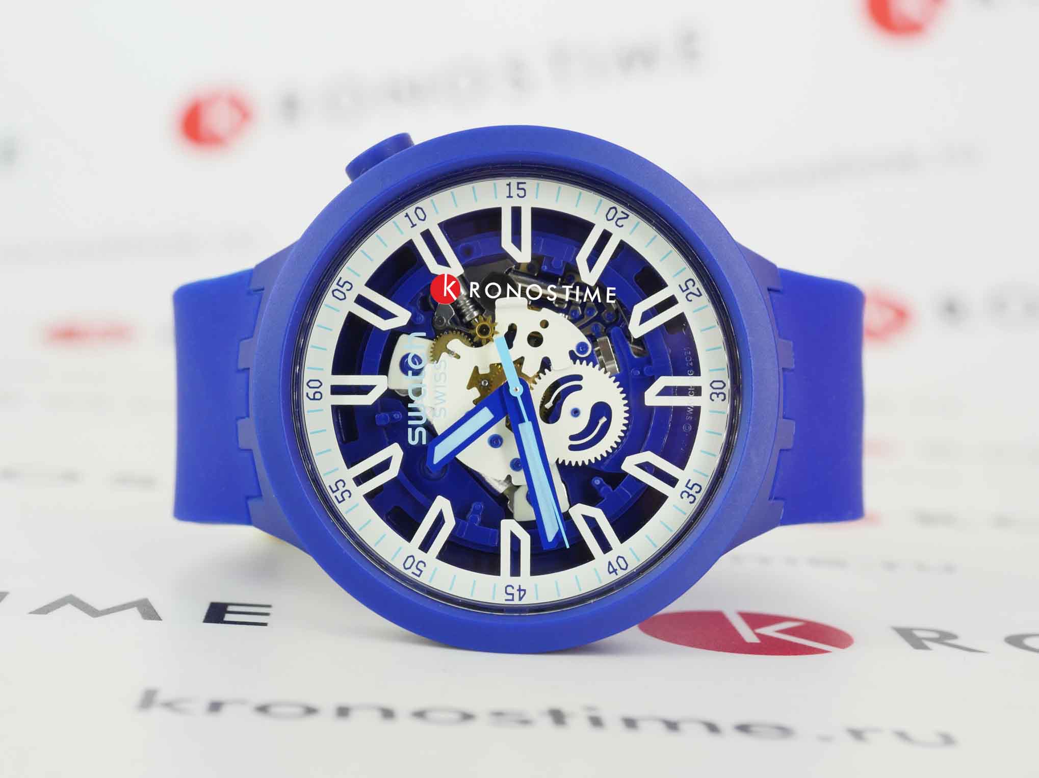 Часы Swatch SB01N102 — это стильный и современный аксессуар для тех, кто ценит лёгкость и комфорт. Часы идеально подойдут как для мужчин, так и для женщин. Корпус этих крупных часов выполнен из прочного матового пластика синего цвета, а ремешок — из силикона. На часовую, минутную стрелки нанесено люминесцентное покрытиеЛюминесцентное покрытиеПозволяет считывать показания времени в темноте. Производители наносят на стрелки, часовые индексы, безель или поверхность циферблата светонакопительный состав, дающий холодное свечение., которое светится в темноте, создавая необычное изображение. Водозащита 30 метров делает часы практичными для повседневного использования. Эти часы подойдут для повседневного ношения и станут ярким акцентом в вашем наряде.