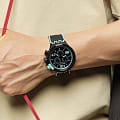 Часы Swatch SB02B100-5300 — это стильный и современный аксессуар для тех, кто ценит лёгкость и комфорт. Часы идеально подойдут как для мужчин, так и для женщин. На фоне матово-черного силиконового ремешка, пластикового корпуса выделяются бирюзовые детали. Циферблат украшают черно-бирюзовый принт и хронографХронографФункция позволяет измерять отрезки времени с особой точностью: часы, минуты, секунды. Верным признаком хронографа является наличие на циферблате 3 дополнительных окошек-счётчиков., на часовую, минутную стрелки нанесено люминесцентное покрытиеЛюминесцентное покрытиеПозволяет считывать показания времени в темноте. Производители наносят на стрелки, часовые индексы, безель или поверхность циферблата светонакопительный состав, дающий холодное свечение., которое светится в темноте, создавая необычное изображение. Эти  часы имеют NFC модуль, поэтому это несомненно лучший способ оплачивать покупки. Водозащита 30 метров делает часы практичными для повседневного использования. Эти часы подойдут для повседневного ношения и станут ярким акцентом в вашем наряде.