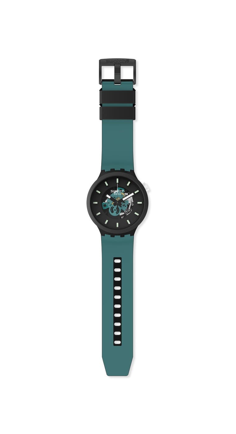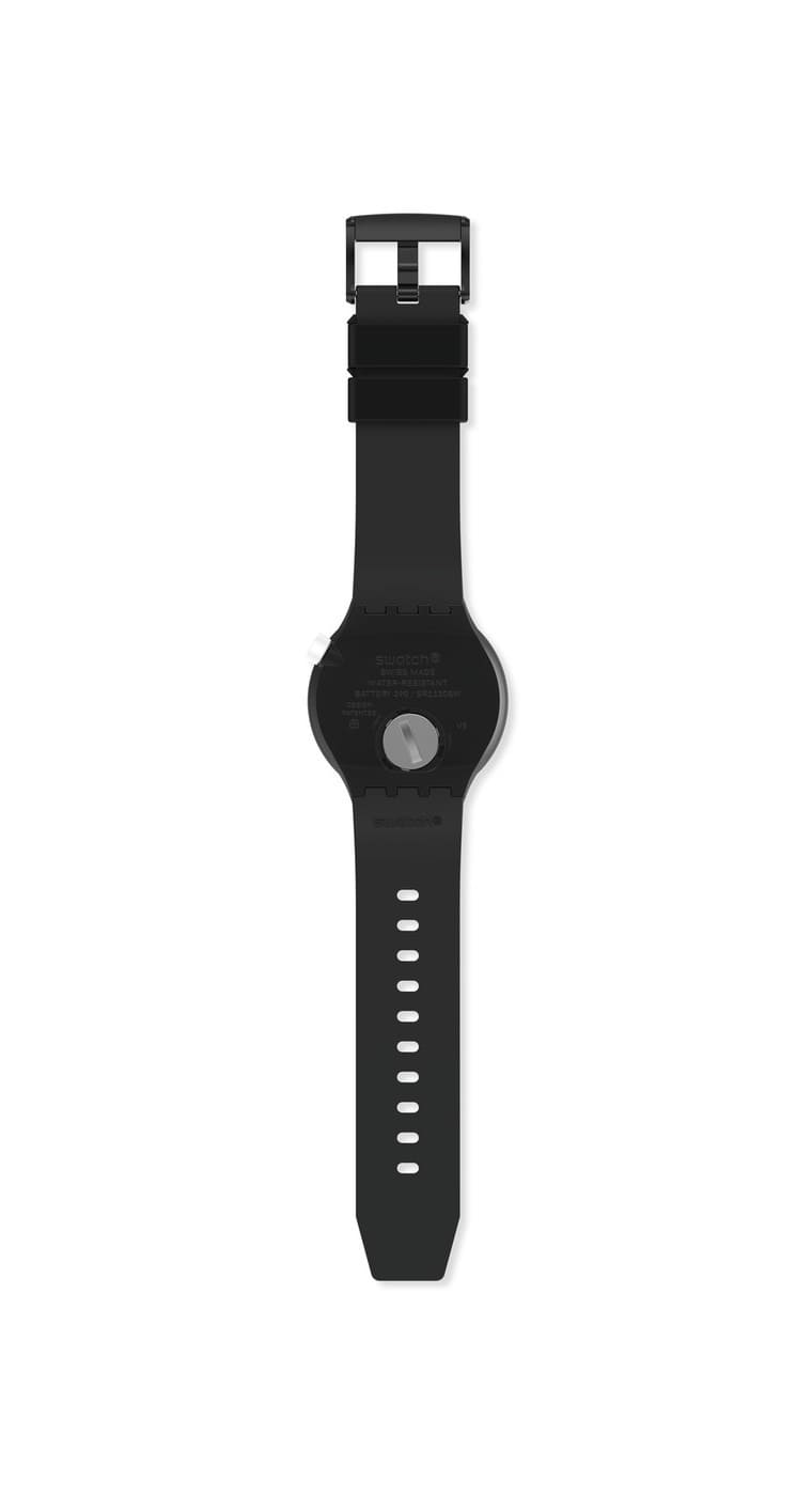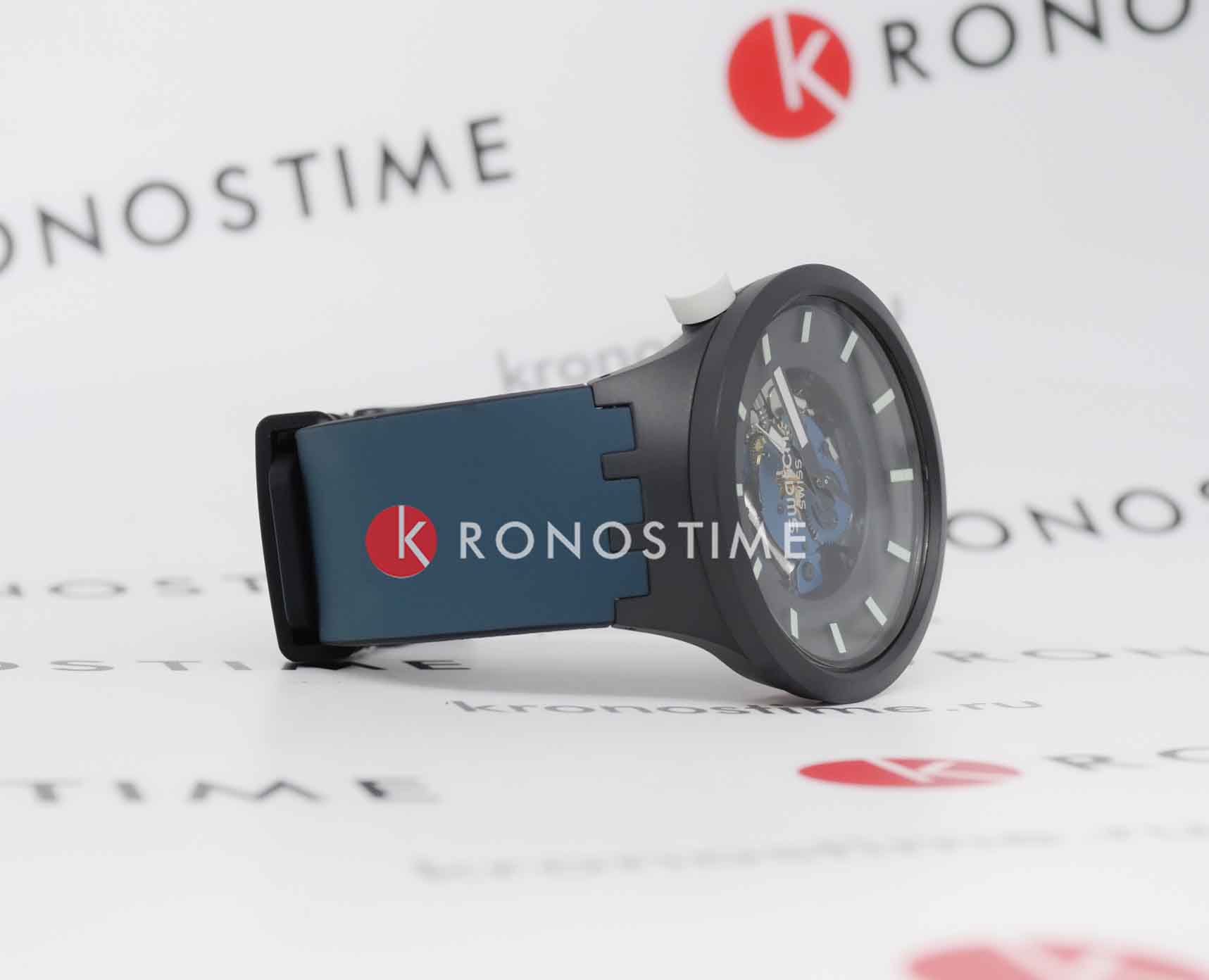 Часы Swatch SB03B107 — это стильный и современный аксессуар для тех, кто ценит лёгкость и комфорт. Часы идеально подойдут как для мужчин, так и для женщин. Центральный элемент этой модели часов — большой корпус со стеклом из био-материала, украшенный 3D-циферблатом с принтами на индексах. Корпус из биокерамикиБиокерамикаБиокерамика — это материал, который на две трети состоит из керамики, на одну треть — из биопластика. Он сочетает в себе лучшие качества обоих материалов и обладает прочностью и шелковистой на ощупь текстурой., а также силиконовые тренчики подчеркивают темно-синий принт на силиконовом ремешке этих огромных часов. На часовую, минутную стрелки нанесено люминесцентное покрытиеЛюминесцентное покрытиеПозволяет считывать показания времени в темноте. Производители наносят на стрелки, часовые индексы, безель или поверхность циферблата светонакопительный состав, дающий холодное свечение., которое светится в темноте, создавая необычное изображение. Водозащита 30 метров делает часы практичными для повседневного использования. Эти часы подойдут для повседневного ношения и станут ярким акцентом в вашем наряде.