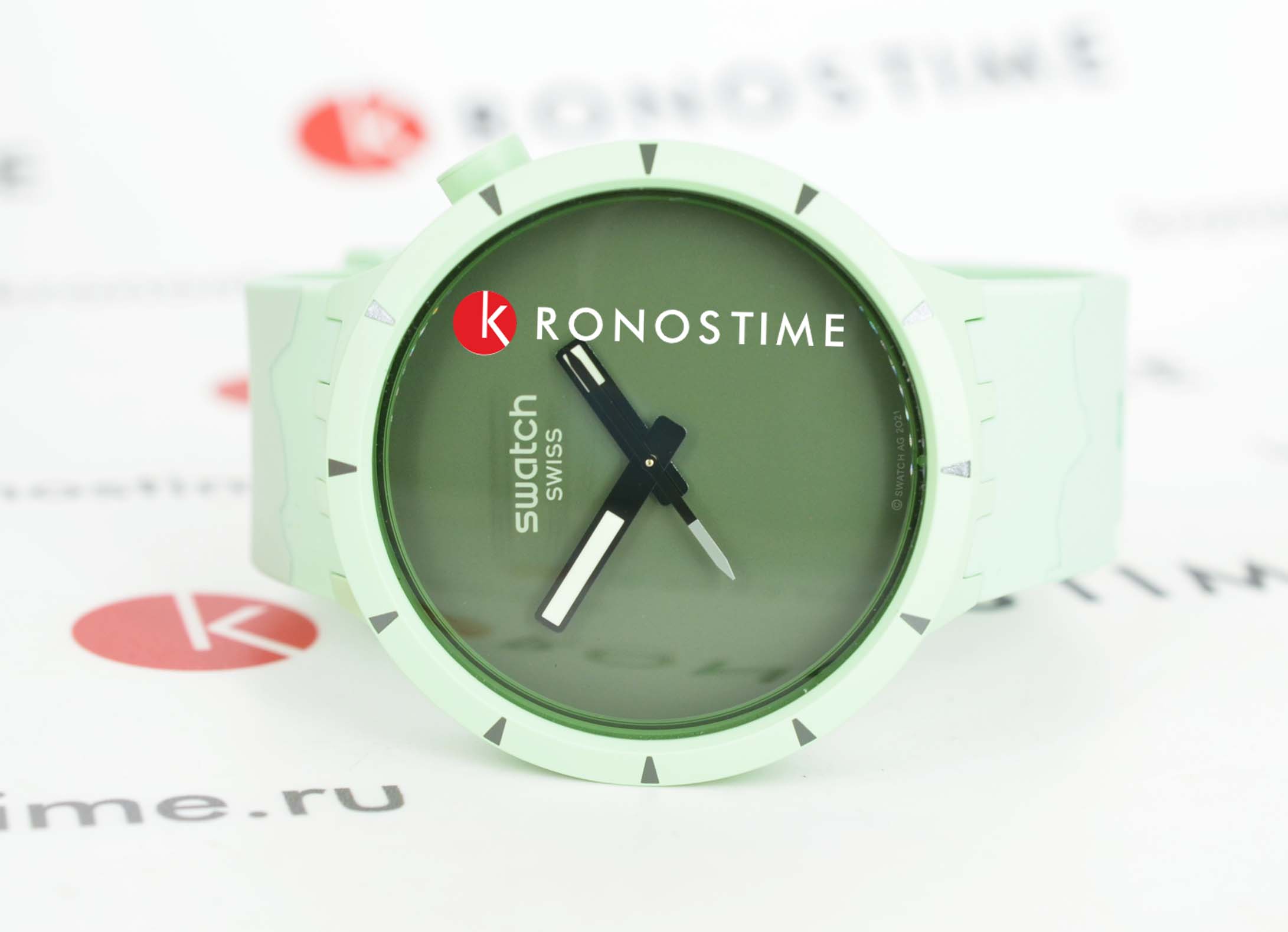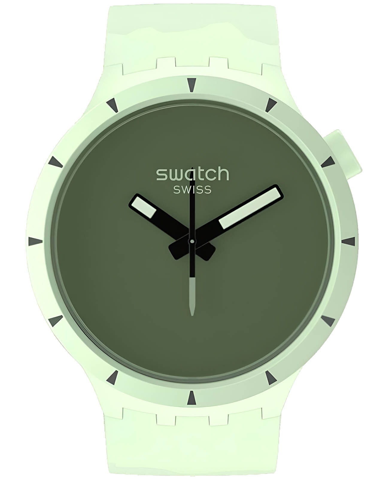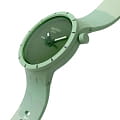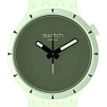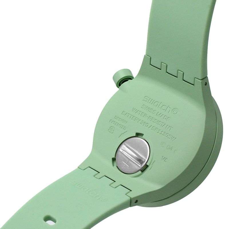 Часы Swatch SB03G100 — это стильный и современный аксессуар для тех, кто ценит лёгкость и комфорт. Часы идеально подойдут как для мужчин, так и для женщин. Корпус из биокерамикиБиокерамикаБиокерамика — это материал, который на две трети состоит из керамики, на одну треть — из биопластика. Он сочетает в себе лучшие качества обоих материалов и обладает прочностью и шелковистой на ощупь текстурой., а ремешок — из однотонного матово-зеленого силикона. Темно-зеленый циферблат подчеркивает белые акценты на темных стрелках. Секундная стрелка, прообразом которой стала стрелка компаса, усиливает дух приключений. На часовую и минутную стрелки нанесено люминесцентное покрытиеЛюминесцентное покрытиеПозволяет считывать показания времени в темноте. Производители наносят на стрелки, часовые индексы, безель или поверхность циферблата светонакопительный состав, дающий холодное свечение., которое светится в темноте, создавая необычное изображение. Водозащита 30 метров делает часы практичными для повседневного использования. Эти часы подойдут для повседневного ношения и станут ярким акцентом в вашем наряде.