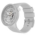 Часы Swatch SB03M100 — это стильный и современный аксессуар для тех, кто ценит лёгкость и комфорт. Часы идеально подойдут как для мужчин, так и для женщин. Прекрасный образец часов, выполненных полностью из материалов биологического происхождения: открытый механизм и биокерамикаБиокерамикаБиокерамика — это материал, который на две трети состоит из керамики, на одну треть — из биопластика. Он сочетает в себе лучшие качества обоих материалов и обладает прочностью и шелковистой на ощупь текстурой., которая создает ощущение шелковистости. Впечатляющий дизайн серого цвета — инновация в своем лучшем проявлении. На часовую, минутную стрелки нанесено люминесцентное покрытиеЛюминесцентное покрытиеПозволяет считывать показания времени в темноте. Производители наносят на стрелки, часовые индексы, безель или поверхность циферблата светонакопительный состав, дающий холодное свечение., которое светится в темноте, создавая необычное изображение. Водозащита 30 метров делает часы практичными для повседневного использования. Эти часы подойдут для повседневного ношения и станут ярким акцентом в вашем наряде.