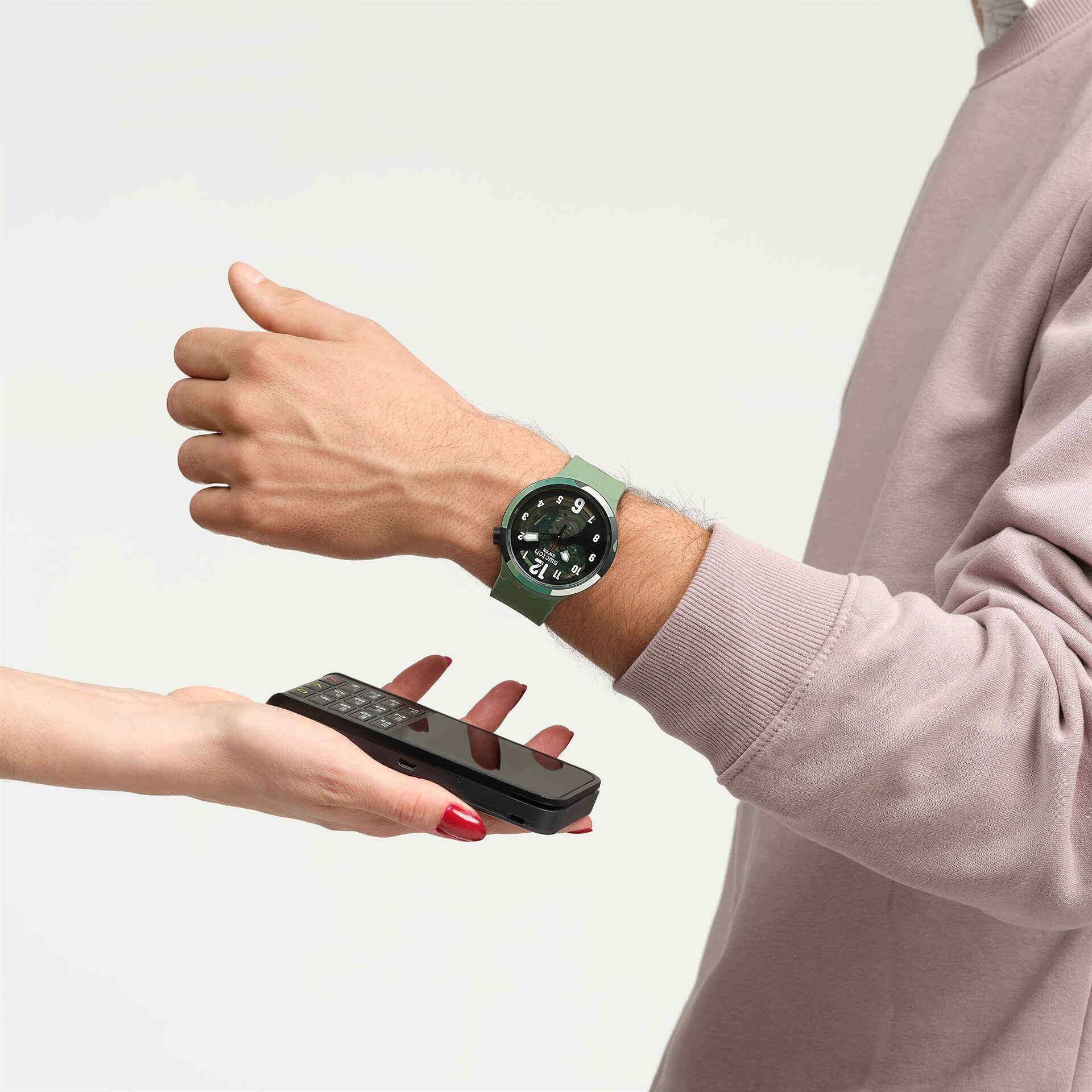 Часы Swatch SB05G108-5300 — это стильный и современный аксессуар для тех, кто ценит лёгкость и комфорт. Часы идеально подойдут как для мужчин, так и для женщин. Зеленые часы с камуфляжным рисунком и печатным циферблатом в корпусе, безелеБезельВнешний ободок, закрепляющий стекло. В спортивных часах так называется поворотное кольцо с делениями на циферблате, выполняет роль таймера – замеряет отрезки времени на шкале. Неподвижный безель – элемент декора. Однонаправленно вращающийся безель на дайверских часах позволяет фиксировать моменты погружения и выныривания на поверхность. и стекла из биоматериала. Эти прочные часы оснащены ремешком зеленого цвета спереди и камуфляжным рисунком с обратной стороны. На часовую, минутную и секундную стрелки нанесено люминесцентное покрытиеЛюминесцентное покрытиеПозволяет считывать показания времени в темноте. Производители наносят на стрелки, часовые индексы, безель или поверхность циферблата светонакопительный состав, дающий холодное свечение., которое светится в темноте, создавая необычное изображение. Эти часы имеют NFC модуль, поэтому это несомненно лучший способ оплачивать покупки. Водозащита 30 метров делает часы практичными для повседневного использования. Эти часы подойдут для повседневного ношения и станут ярким акцентом в вашем наряде.
