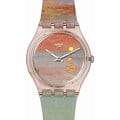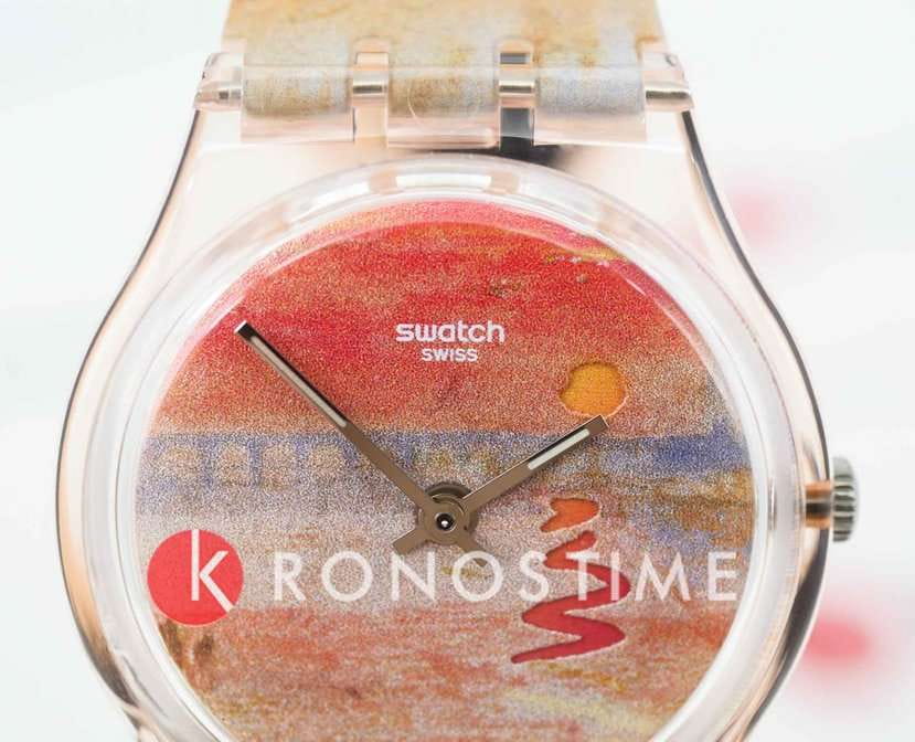 Часы Swatch SO28Z700 — эффектный и надежный аксессуар. Эти часы из коллекции Swatch x Tate Gallery обладают прозрачным глянцево-розовым корпусом и стеклом из биоматериала. Циферблат и матово-розовый ремешок украшены принтом с репродукцией картины Тёрнера (JMW Turner) «Алый закат» («The Scarlet Sunset»). Время отсчитывают серебристые стрелки с люминесцентным покрытиемЛюминесцентное покрытиеПозволяет считывать показания времени в темноте. Производители наносят на стрелки, часовые индексы, безель или поверхность циферблата светонакопительный состав, дающий холодное свечение., которые светятся в темноте, а солнце на циферблате меняет цвет в течение дня благодаря разноцветному календарному колесу. На прозрачном матовом ремешке расположен логотип Tate Gallery. Ремешок из силикона на стандартной застёжке. Внутри часов установлен надежный кварцевый механизм, который обеспечивает точность хода. Эти часы водонепроницаемы до 30 метров, что позволяет не беспокоиться о случайных брызгах или дождевых каплях. Swatch SO28Z700 — это идеальный выбор для тех, кто ценит сочетание стиля, комфорта и функциональности в одном аксессуаре.