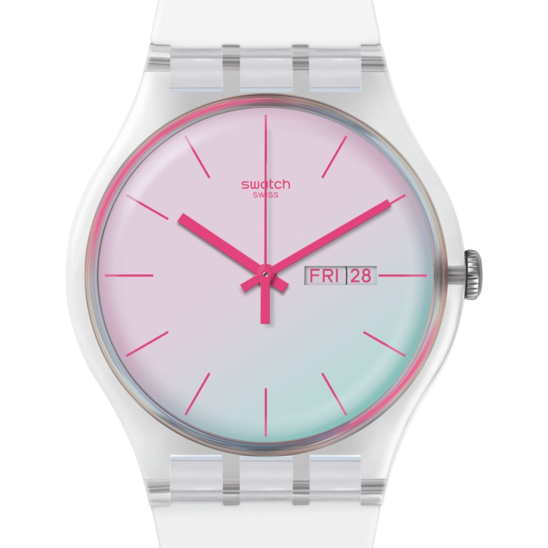 Часы Swatch SO29K704 — стильный и надежный аксессуар. Эти часы имеют белый циферблат с розовыми индексами и стекло Solar Spectrum. У них прозрачный корпус из биоматериала, а также белый ремешок и петля. Окошко даты и дня недели с розовыми буквами на уровне 3 часов. Ремешок из силикона на стандартной застёжке. Внутри часов установлен надежный кварцевый механизм, который обеспечивает точность хода. Эти часы водонепроницаемы до 30 метров, что позволяет не беспокоиться о случайных брызгах или дождевых каплях. Swatch SO29K704 — это идеальный выбор для тех, кто ценит сочетание стиля, комфорта и функциональности в одном аксессуаре.