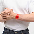 Часы Swatch SO29R705 — стильный и надежный аксессуар. Эти часы Swatch Pride 2023 Special отличаются циферблатом с красным принтом и красным стеклом из биоматериалов, а также корпусом из тех же материалов. Часовая и минутная стрелки выполнены в черном цвете, при этом минутная стрелка символизирует значение красного цвета в флаге Прайда: жизнь. Ремешок этих красных часов дополнен двумя специальными петлями, которые, соединяясь, образуют радугу. Ремешок силиконовый на классической застежке. Имеется окошко даты и дня недели в положении 3 часа. Внутри часов установлен надежный кварцевый механизм, который обеспечивает точность хода. Эти часы водонепроницаемы до 30 метров, что позволяет не беспокоиться о случайных брызгах или дождевых каплях. Swatch SO29R705 — это идеальный выбор для тех, кто ценит сочетание стиля, комфорта и функциональности в одном аксессуаре.
