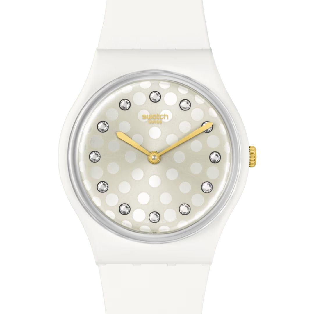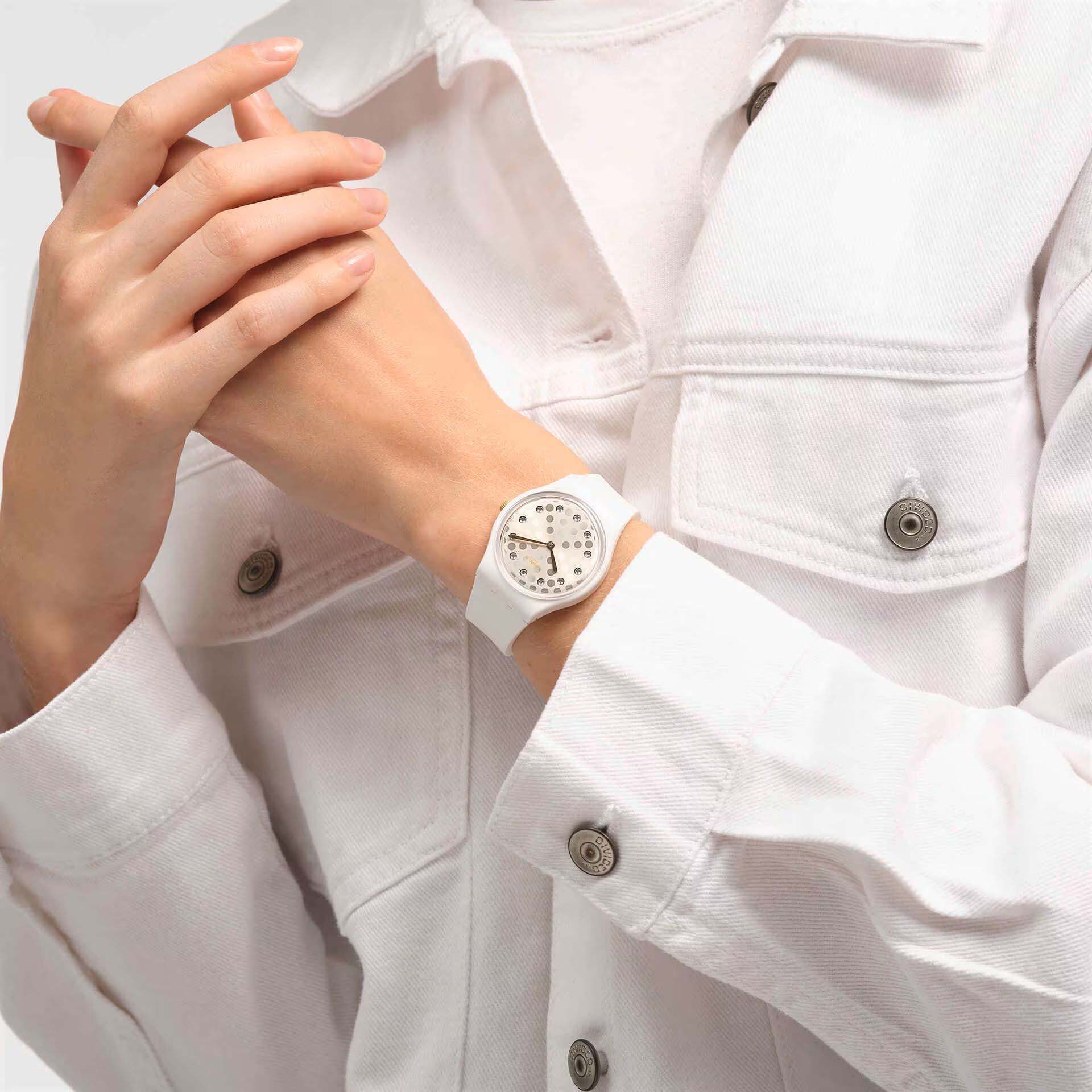 Часы Swatch SO31W109 — стильный и удобный аксессуар. Кварцевые часы с корпусом из биокерамики. Белые часы, декорированные 12 кристаллами вместо индексов и золотистыми стрелками. Ремешок силиконовый на стандартной застёжке. Внутри часов установлен надежный кварцевый механизм, который обеспечивает точность хода. Эти часы водонепроницаемы до 30 метров, что позволяет не беспокоиться о случайных брызгах или дождевых каплях. Swatch SO31W109 — это идеальный выбор для тех, кто ценит сочетание стиля, комфорта и функциональности в одном аксессуаре.