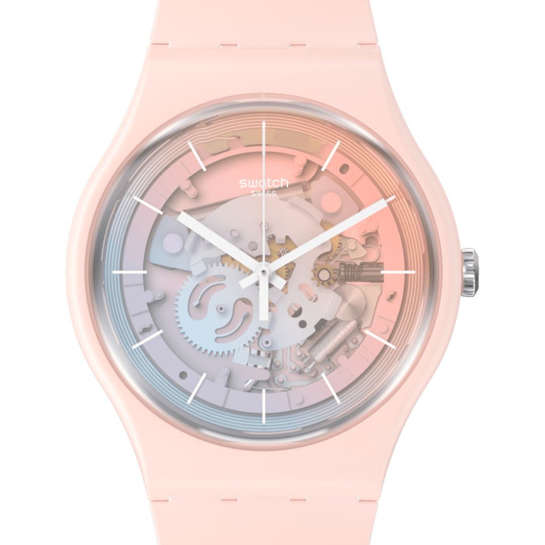 Часы Swatch Original Bioceramic Fleetingly Pink Pay! SO32P103-5300 — это стильный и универсальный аксессуар, подходящий как для мужчин, так и для женщин. Часы поддерживают функцию бесконтактной оплаты SwatchPAY!. Модель отличается круглым корпусом диаметром 41 мм и толщиной 9 мм, выполненным из прочного пластика лососевого цвета. Циферблат также лососевого оттенка, что создает гармоничный и привлекательный внешний вид. Часы оснащены кварцевым механизмом, обеспечивающим точное измерение времени. Стекло из плексигласа защищает циферблат от царапин и повреждений. Ремешок выполнен из силикона, что обеспечивает комфорт при носке. Водонепроницаемость 3 бар позволяет не беспокоиться о случайных брызгах или кратковременном погружении в воду. Модель SO32P103-5300 не имеет функции отображения даты, что придает циферблату минималистичный и чистый вид. Прозрачный циферблат позволяет наблюдать механизм часов. Эти часы станут ярким акцентом в любом образе. Они идеально подойдут как для повседневной носки, так и для особых случаев, привлекая внимание своим необычным цветовым решением и современным дизайном.