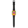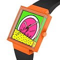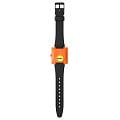Swatch Square Bioceramic Standard SO34Z101 "BREAK TIME" - это оригинальные квадратные часы с корпусом 41,8*41,8 мм из многоцветной биокерамики. Модель оснащена кварцевым механизмом, окошком даты и дня недели, водонепроницаемостью до 20 метров. Часы имеют черный матовый ремешок из биоматериала, оранжевый корпус и стекло из биоматериала. Черные стрелки с люминесцентным покрытиемЛюминесцентное покрытиеПозволяет считывать показания времени в темноте. Производители наносят на стрелки, часовые индексы, безель или поверхность циферблата светонакопительный состав, дающий холодное свечение.. Эта экологичная модель унисекс сочетает инновационные материалы с ярким дизайном, вдохновленным оригинальным Swatch 1983 года, и подходит для тех, кто ценит минимализм и заботу об окружающей среде.