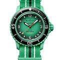 Швейцарские наручные часы сочетают в себе современный дизайн и инновационные технологии. Модель обладает круглым корпусом диаметром 42,3 мм, изготовленным из биокерамикиБиокерамикаБиокерамика — это материал, который на две трети состоит из керамики, на одну треть — из биопластика. Он сочетает в себе лучшие качества обоих материалов и обладает прочностью и шелковистой на ощупь текстурой., что обеспечивает высокую прочность и устойчивость к внешним воздействиям . Толщина корпуса составляет 14,4 мм, а расстояние между ушками — 48,0 мм, что делает часы удобными для повседневного использования . Ремешок выполнен из ткани в стиле ремешка NATOРемешок NATOРемешок NATO — это прочный, универсальный и сменный часовой ремешок, изначально созданный для военных. Он изготовлен из нейлона или другого прочного материала и имеет уникальную конструкцию, которая позволяет часам оставаться на запястье даже в случае поломки одной из прикрепляющих точек. , гарантируя комфортное ношение и долговечность . Зеленый циферблат дополнен люминесцентными метками и арабскими цифрами, что обеспечивает четкость считывания времени в любых условиях . Для защиты используется органическое стекло, обеспечивающее надежную защиту от царапин и механических повреждений . Часы работают на автоматическом механизме Sistem51, что гарантирует точность хода без необходимости регулярной подзаводки . Водонепроницаемость часов достигает 100 метров, что позволяет использовать их в повседневных условиях, однако не рекомендуется погружение на большую глубину . Дополнительные элементы дизайна, такие как заводная головка и кнопки-пушеры, выполненные из биокерамикиБиокерамикаБиокерамика — это материал, который на две трети состоит из керамики, на одну треть — из биопластика. Он сочетает в себе лучшие качества обоих материалов и обладает прочностью и шелковистой на ощупь текстурой., завершают образ этих стильных и функциональных часов.