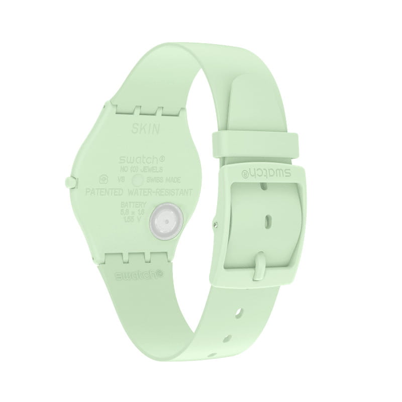 Часы Swatch SS09G101 — это стильный и современный аксессуар для тех, кто ценит лёгкость и комфорт. Часы идеально подойдут как для мужчин, так и для женщин. Зеленый принт на циферблате и биостекло — вот особенность этих тонких часов. Однотонный матово-зеленый корпус из биокерамикиБиокерамикаБиокерамика — это материал, который на две трети состоит из керамики, на одну треть — из биопластика. Он сочетает в себе лучшие качества обоих материалов и обладает прочностью и шелковистой на ощупь текстурой. дополнен матово-зеленым ремешком из биоматериала и пластиковой пряжкой. Водозащита 30 метров делает часы практичными для повседневного использования. Эти часы подойдут для повседневного ношения и станут ярким акцентом в вашем наряде.