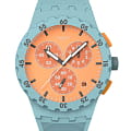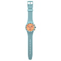Часы Swatch SUSL401 — это стильный и современный аксессуар для тех, кто ценит лёгкость и комфорт. Часы идеально подойдут как для мужчин, так и для женщин. Этот хронографХронографФункция позволяет измерять отрезки времени с особой точностью: часы, минуты, секунды. Верным признаком хронографа является наличие на циферблате 3 дополнительных окошек-счётчиков. привлекает внимание светло-оранжевым циферблатом с темно-оранжевыми дополнительными циферблатами, темно-зелёными светящимися в темноте благодаря люминесцентному покрытиюЛюминесцентное покрытиеПозволяет считывать показания времени в темноте. Производители наносят на стрелки, часовые индексы, безель или поверхность циферблата светонакопительный состав, дающий холодное свечение. часовой, минутной и вспомогательной стрелками, белой секундной стрелкой и окошком указателем даты в положении между «4» и «5» часами. Матовый светло-зелёный корпус располагает безелемБезельВнешний ободок, закрепляющий стекло. В спортивных часах так называется поворотное кольцо с делениями на циферблате, выполняет роль таймера – замеряет отрезки времени на шкале. Неподвижный безель – элемент декора. Однонаправленно вращающийся безель на дайверских часах позволяет фиксировать моменты погружения и выныривания на поверхность. с темно-зелёным принтом и разноцветной заводной головкой и кнопками. Его дополняет текстурный матовый светло-зелёный ремешок с тренчиком и пряжкой в тон. На фактурном бирюзовом ремешке контрастно выделяются полупрозрачные тренчики желтого и оранжевого цвета и синяя пряжка. Водозащита 30 метров делает часы практичными для повседневного использования. Эти часы подойдут для повседневного ношения и станут ярким акцентом в вашем наряде.