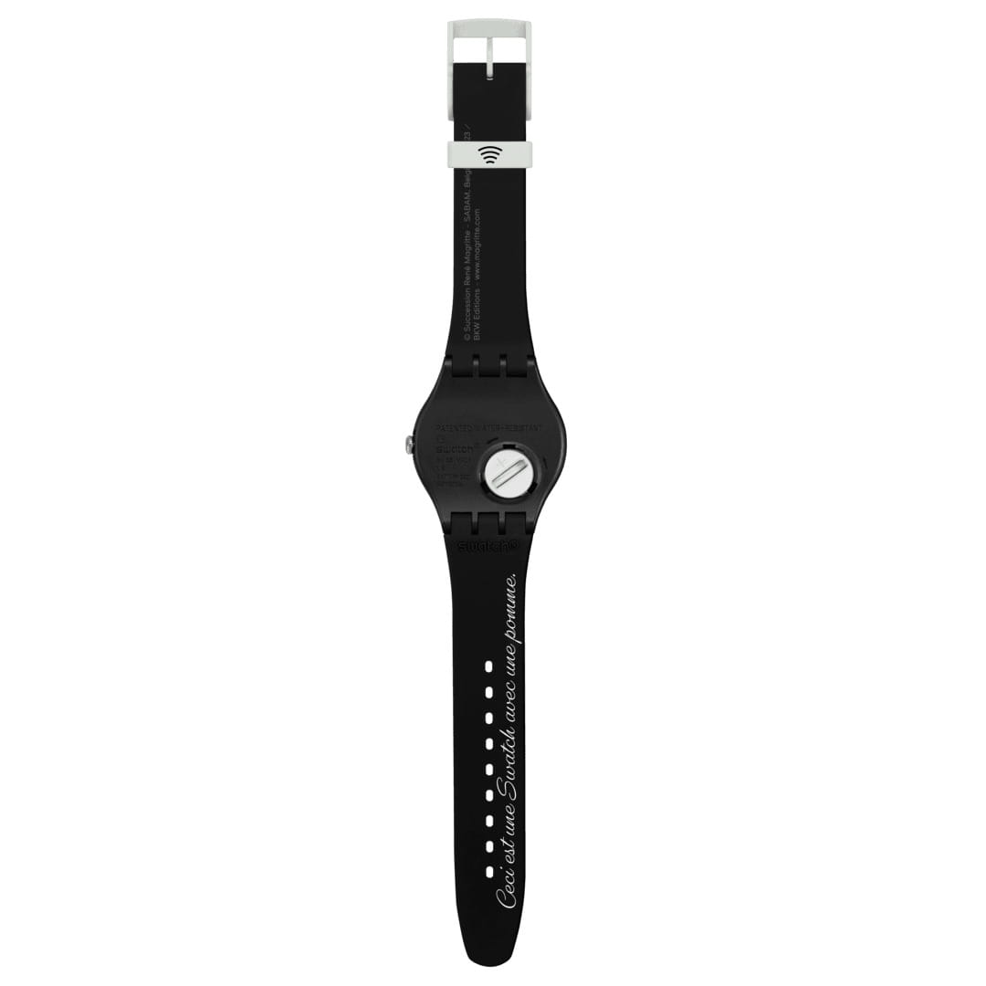 Часы Swatch SVIZ103-5300 — это стильный и современный аксессуар для тех, кто ценит лёгкость и комфорт. Часы идеально подойдут как для мужчин, так и для женщин. На лицевой стороне модели LE FILS DE L'HOMME BY RENE MAGRITTE воспроизведена картина художника-сюрреалиста Рене Магритта «Le Fils de l’homme» («Сын человеческий»), изображение которой простирается по ремешку, корпусу и цветному циферблату. Оборотную сторону ремешка украшает надпись, отсылающая к сюрреалистическому стилю художника: «Ceci est une Swatch avec une pomme», что переводится как «Это часы Swatch с яблоком»). Тренчик дополнен принтом с именем художника. Эти часы имеют NFC модуль, поэтому это несомненно лучший способ оплачивать покупки. Водозащита 30 метров делает часы практичными для повседневного использования. Эти часы подойдут для повседневного ношения и станут ярким акцентом в вашем наряде.