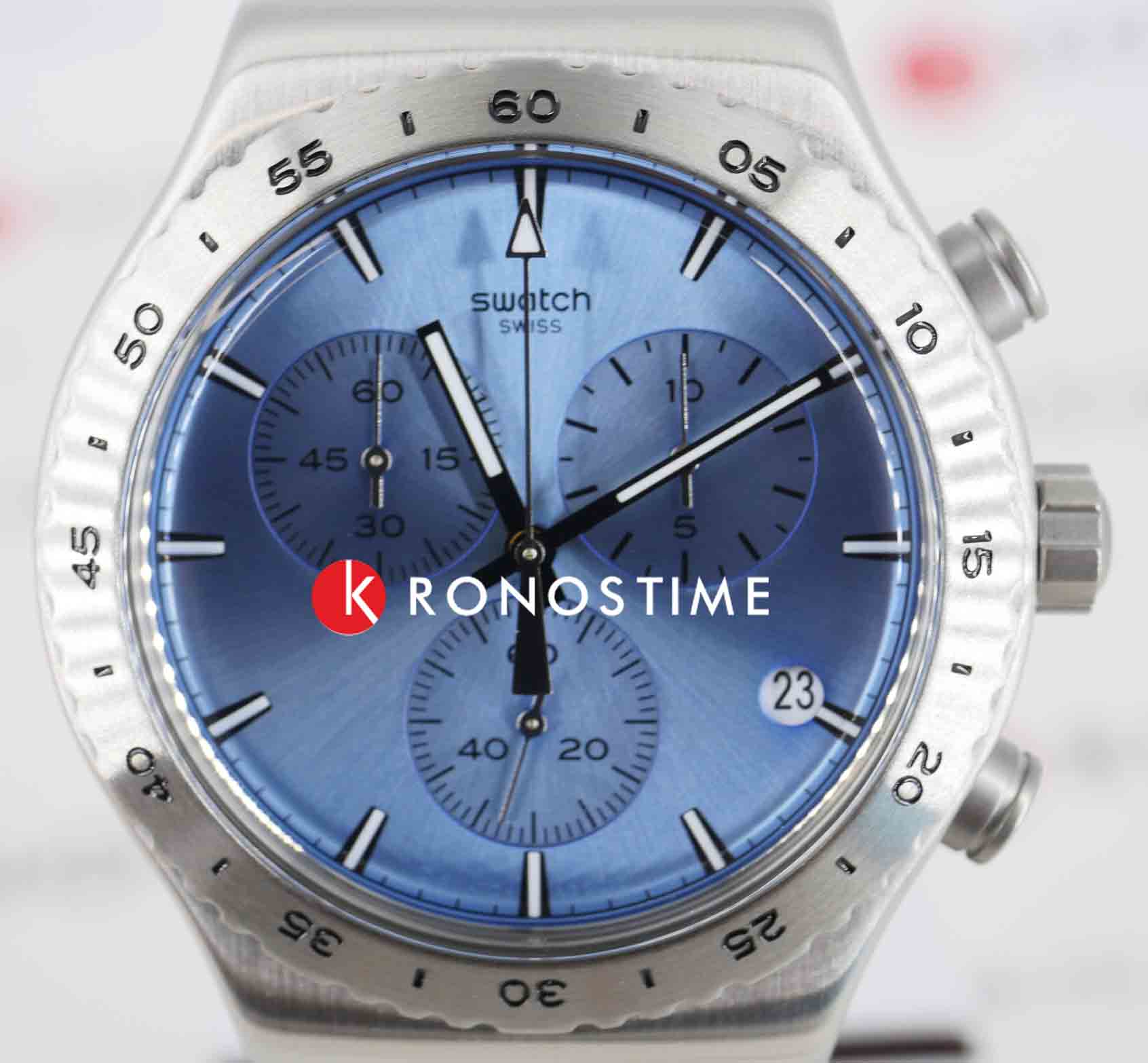 Часы Swatch YVS528G — это стильный и современный аксессуар для тех, кто ценит лёгкость и комфорт. Эта стильная модель часов из нержавеющей стали дополнена матовым металлическим браслетом из нержавеющей стали со съемными звеньями и застёжкой «бабочка»Застёжка "бабочка"Такой вид застёжки дополняется предохранителями, помогающими избежать случайного раскрытия браслета. Обладают изящным исполнением. . Голубой циферблат с радиальной полировкой оснащен хронографомХронографФункция позволяет измерять отрезки времени с особой точностью: часы, минуты, секунды. Верным признаком хронографа является наличие на циферблате 3 дополнительных окошек-счётчиков. и светящимися в темноте индексами и стрелками из-за люминесцентного покрытияЛюминесцентное покрытиеПозволяет считывать показания времени в темноте. Производители наносят на стрелки, часовые индексы, безель или поверхность циферблата светонакопительный состав, дающий холодное свечение. заключен в матовый корпус из нержавеющей стали. Завершают образ индикатор даты в положении «4 часа» на циферблате, а также черные цифры и индексы на безелеБезельВнешний ободок, закрепляющий стекло. В спортивных часах так называется поворотное кольцо с делениями на циферблате, выполняет роль таймера – замеряет отрезки времени на шкале. Неподвижный безель – элемент декора. Однонаправленно вращающийся безель на дайверских часах позволяет фиксировать моменты погружения и выныривания на поверхность. из нержавеющей стали. Водозащита 30 метров делает часы практичными для повседневного использования. Эти часы подойдут для повседневного ношения и станут ярким акцентом в вашем наряде.