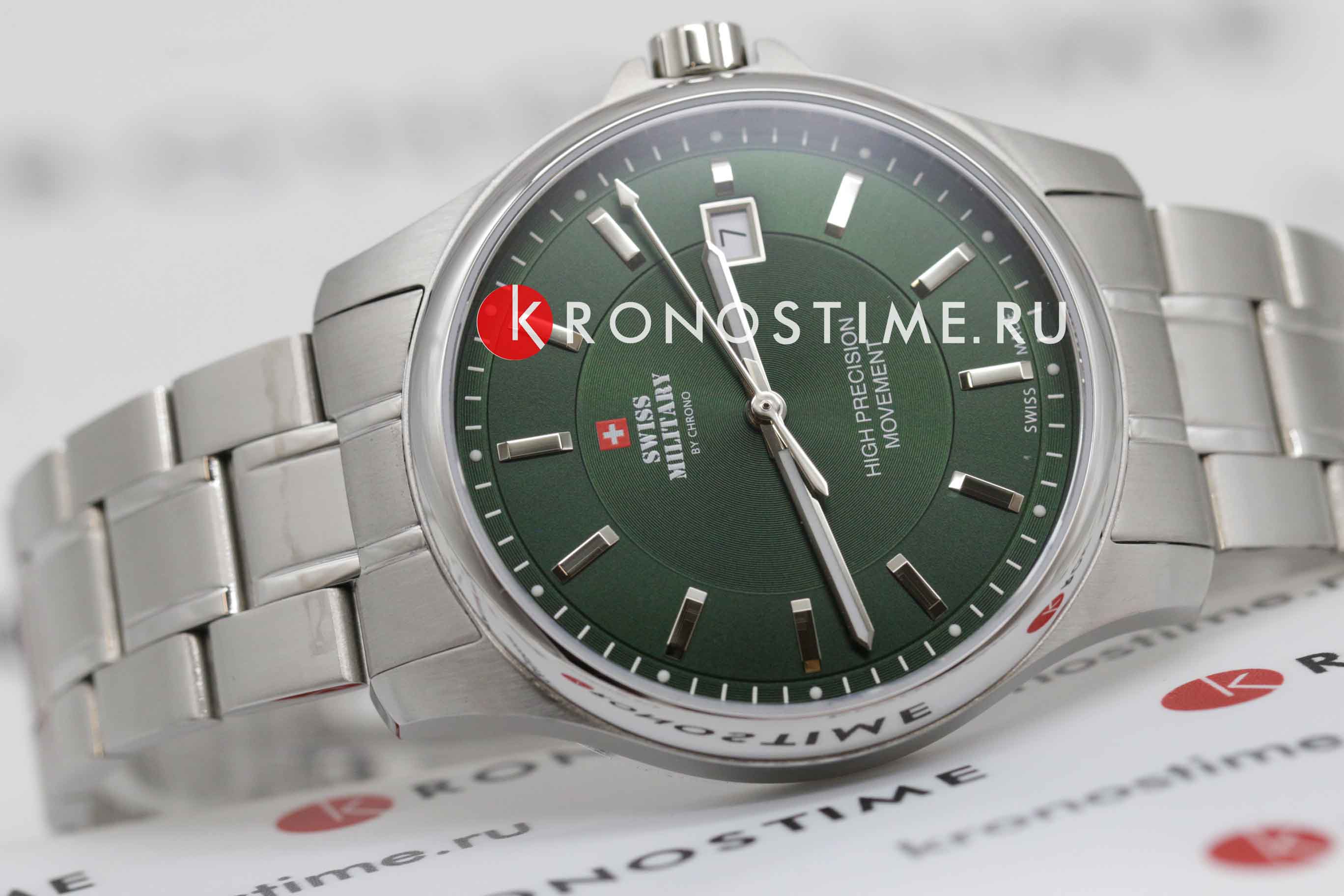 Часы Swiss Military SM30200.31 — это сочетание элегантного дизайна и швейцарской точности, созданное для современных мужчин. Корпус из нержавеющей стали диаметром 39 мм защищён сапфировым стекломСапфировое стеклоПрочный и надёжный материал из кристалла сапфира синтетического происхождения, характеризующийся особой твёрдостью и устойчивостью к царапинам и повреждениям., которое предотвращает появление царапин и сохраняет идеальный внешний вид. Зелёный циферблат с часовыми метками и стрелками, покрытыми люминесцентным составомЛюминесцентное покрытиеПозволяет считывать показания времени в темноте. Производители наносят на стрелки, часовые индексы, безель или поверхность циферблата светонакопительный состав, дающий холодное свечение., обеспечивает превосходную читаемость в любое время суток.