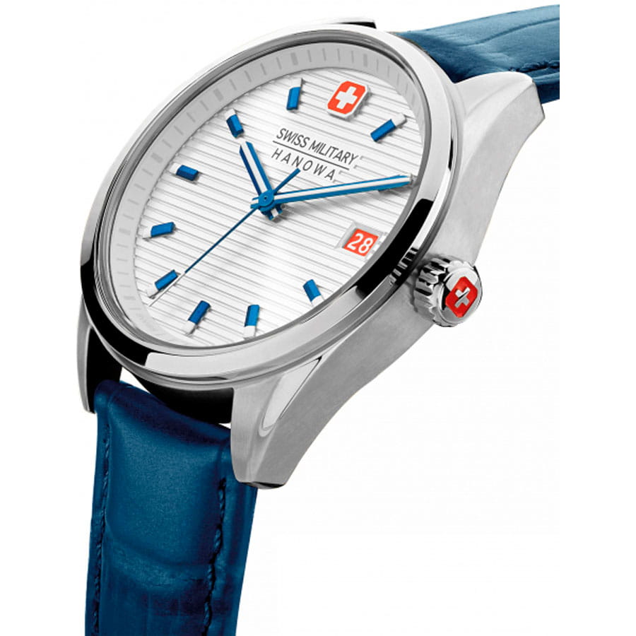 Швейцарские женские часы Swiss Military Hanowa Roadrunner SMWLB2200203 , кварцевый механизм с высокой точностью. Сапфировое стеклоСапфировое стеклоПрочный и надёжный материал из кристалла сапфира синтетического происхождения, характеризующийся особой твёрдостью и устойчивостью к царапинам и повреждениям. устойчивое к появлению царапин, обладающее высокой прозрачностью. Класс водозащиты: 100 метров, позволит плавать, нырять и заниматься другими водными видами спорта. Корпус часов изготовлен из стали. Кожаный ремешок с классической застежкой.