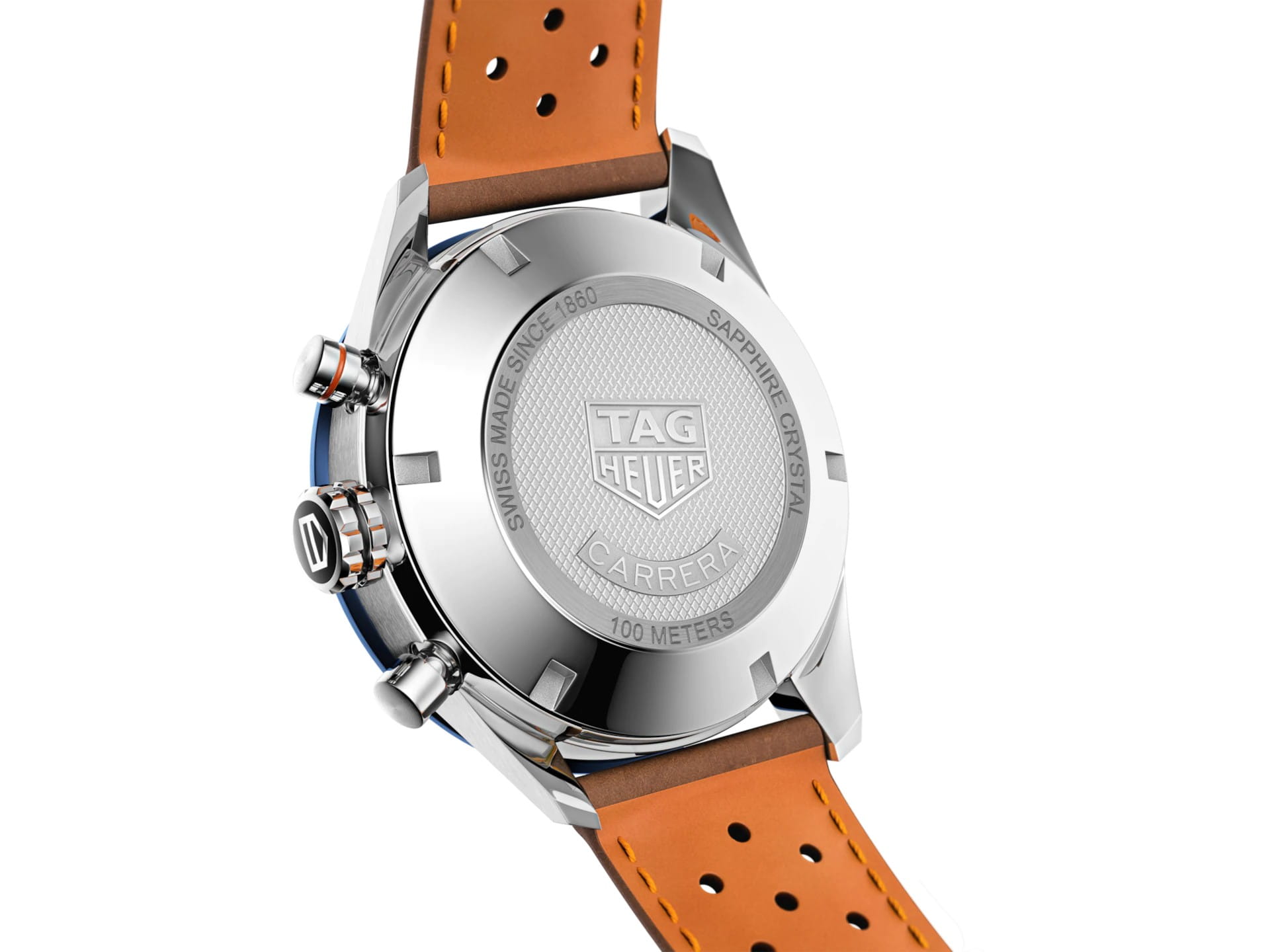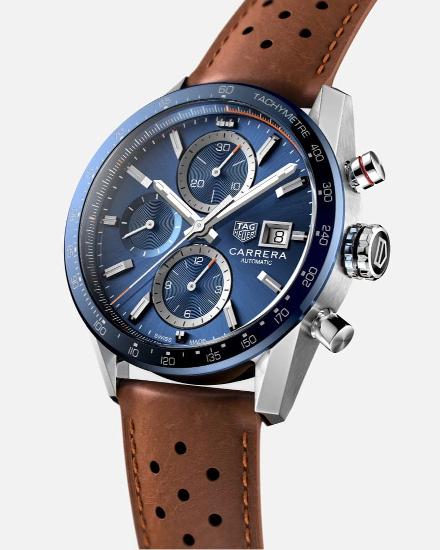 Сочетание синего матового циферблата с эффектом Sunray, стального корпуса с полированными и матовыми поверхностями и ремешка из коричневой перфорированной телячьей кожи придает этому хронографу подчеркнуто мужской автогоночный стиль. Оформление циферблата хронографа с классическим расположением счетчиков 6-9-12 говорит о его связи с миром автоспорта и дизайном гоночных болидов. TAG Heuer Carrera CBM2112.FC6455, механический механизм (автоматический калибр) с высокой точностью. Сапфировое стекло устойчивое к появлению царапин, обладающее высокой прозрачностью. Класс водозащиты: 100 метров, позволит плавать, нырять и заниматься другими водными видами спорта. Корпус часов изготовлен из стали, цвета.