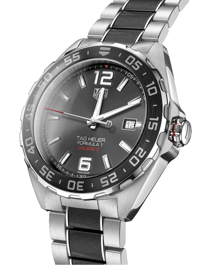 Мужские спортивные часы в городском стиле с серым циферблатом и полированным браслетом из стали и керамики. Надежный, проверенный на дорогах мощный автоматический механизм Caliber 5 рассчитан на длительное использование. TAG Heuer Formula 1 WAZ2011.BA0843, механический механизм (автоматический калибр) с высокой точностью. Сапфировое стекло устойчивое к появлению царапин, обладающее высокой прозрачностью. Класс водозащиты: 200 метров, позволит плавать, нырять и заниматься другими водными видами спорта. Корпус часов изготовлен из стали, цвета.