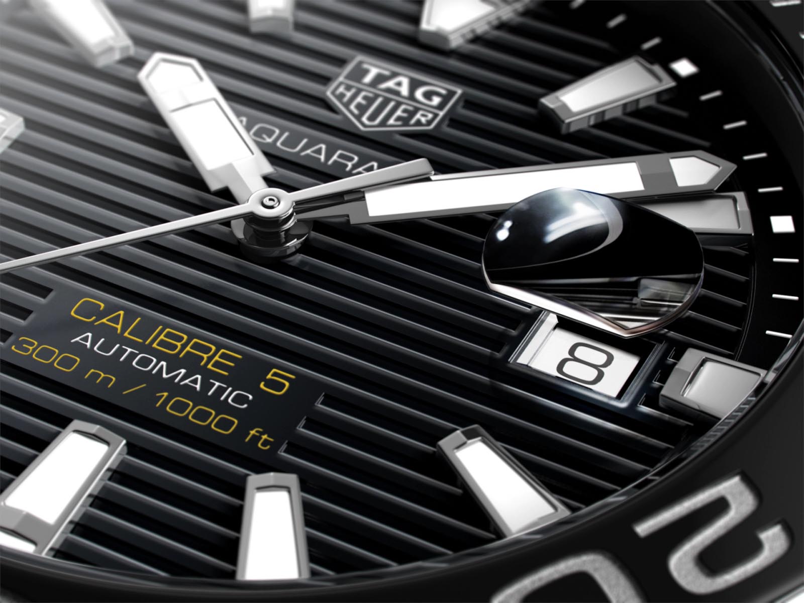 Автоматические мужские часы TAG Heuer Aquaracer Calibre 5 Automatic WAY201A.BA0927, механический механизм (автоматический калибр) с высокой точностью. Сапфировое стеклоСапфировое стеклоПрочный и надёжный материал из кристалла сапфира синтетического происхождения, характеризующийся особой твёрдостью и устойчивостью к царапинам и повреждениям. устойчивое к появлению царапин, обладающее высокой прозрачностью. Класс водозащиты: 300 метров, позволит плавать, нырять и заниматься другими водными видами спорта. Корпус часов изготовлен из стали. Стальной браслет на раскладной застёжкеРаскладная застёжкаТакой тип застёжки используется только на браслетах из металла. Она никогда не раскрывается полностью, происходит разделение на 2 и более частей. Раскладывающая застёжка снизит вероятность потери часов к минимуму.. В механизме 25 или 26 камней в зависимости от исполнения, частота 28800 полуколебаний в час. Запас хода 38 часов. Окошко даты с увеличительным стеклом. Керамический безельБезельВнешний ободок, закрепляющий стекло. В спортивных часах так называется поворотное кольцо с делениями на циферблате, выполняет роль таймера – замеряет отрезки времени на шкале. Неподвижный безель – элемент декора. Однонаправленно вращающийся безель на дайверских часах позволяет фиксировать моменты погружения и выныривания на поверхность. вращается в одном направлении. Завинчивающаяся заводная головка с защитой. Завинчивающаяся задняя крышка. Накладные полированные граненые индексы с родиевым покрытием. Стрелки и метки с люминесцентным покрытиемЛюминесцентное покрытиеПозволяет считывать показания времени в темноте. Производители наносят на стрелки, часовые индексы, безель или поверхность циферблата светонакопительный состав, дающий холодное свечение..