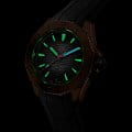 Механический механизм (автоматический калибр) с высокой точностью. Сапфировое стеклоСапфировое стеклоПрочный и надёжный материал из кристалла сапфира синтетического происхождения, характеризующийся особой твёрдостью и устойчивостью к царапинам и повреждениям. устойчивое к появлению царапин, обладающее высокой прозрачностью. Стрелки и метки с люминесцентным покрытиемЛюминесцентное покрытиеПозволяет считывать показания времени в темноте. Производители наносят на стрелки, часовые индексы, безель или поверхность циферблата светонакопительный состав, дающий холодное свечение.. Класс водозащиты: 200 метров, позволит плавать, нырять и заниматься другими водными видами спорта. Корпус часов изготовлен из нержавеющей стали. Каучуковый ремешок с раскладной застёжкойРаскладная застёжкаТакой тип застёжки используется только на браслетах из металла. Она никогда не раскрывается полностью, происходит разделение на 2 и более частей. Раскладывающая застёжка снизит вероятность потери часов к минимуму..