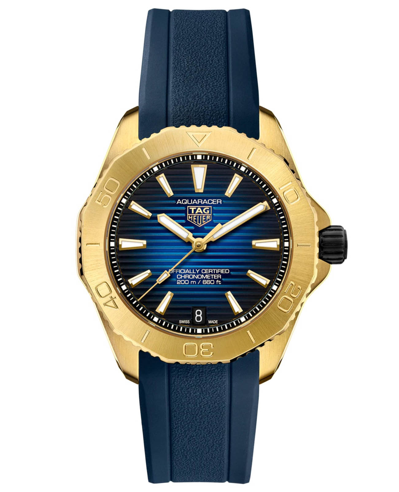 Изящный корпус этой модели TAG Heuer Aquaracer, выполненный из цельного желтого 18-каратного золото18-каратное золотоОбозначение по каратной системе пробирования, оно показывает, сколько драгоценного металла содержится в изделии. 18 карат - в составе 75% чистого золота, соответствует 750 пробе.