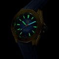 Механический механизм (автоматический калибр) с высокой точностью. Сапфировое стеклоСапфировое стеклоПрочный и надёжный материал из кристалла сапфира синтетического происхождения, характеризующийся особой твёрдостью и устойчивостью к царапинам и повреждениям. устойчивое к появлению царапин, обладающее высокой прозрачностью. Стрелки и метки с люминесцентным покрытиемЛюминесцентное покрытиеПозволяет считывать показания времени в темноте. Производители наносят на стрелки, часовые индексы, безель или поверхность циферблата светонакопительный состав, дающий холодное свечение.. Класс водозащиты: 200 метров, позволит плавать, нырять и заниматься другими водными видами спорта. Корпус часов изготовлен из нержавеющей стали. Каучуковый ремешок с раскладной застёжкойРаскладная застёжкаТакой тип застёжки используется только на браслетах из металла. Она никогда не раскрывается полностью, происходит разделение на 2 и более частей. Раскладывающая застёжка снизит вероятность потери часов к минимуму..
