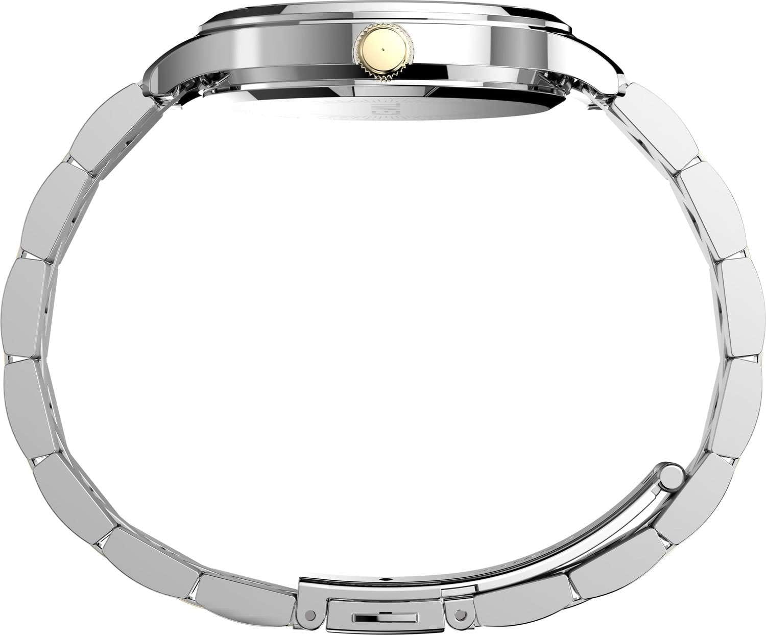 Наручные часы Timex TW2V06500 — это изящный аксессуар, который подчеркнет превосходный вкус своей обладательницы. Изготовленные в США, эти практичные женские часы оснащены надежным кварцевым механизмом, обеспечивающим точность хода. Корпус часов выполнен из латуни, которое придает изделию изысканный и современный вид. Белый циферблат украшен рельефным декоративным узором и оснащен листовидными стрелками в стиле Feuille, что обеспечивает элегантный внешний вид. Метки в виде штрихов и отсутствие секундной стрелки придают модели минималистичный стиль. Часы оснащены рифленой заводной головкой и надежным стальным браслетом с частичным PVDPVDУльтратонкое покрытие наносится в технике вакуумного напыления, сочетает в себе нитрид титана особой прочности со слоем золота или оксида хрома. Несёт в себе декоративную или защитную функцию. покрытием, который имеет раскладную застёжкуРаскладная застёжкаТакой тип застёжки используется только на браслетах из металла. Она никогда не раскрывается полностью, происходит разделение на 2 и более частей. Раскладывающая застёжка снизит вероятность потери часов к минимуму. для комфортной посадки на запястье. Водозащита 30WR позволяет носить часы в различных условиях, защищая их от случайных брызг. Минеральное стеклоМинеральное стеклоМинеральное стекло представляет собой искусственно выращенный минерал кварца. Такое стекло отличается особой устойчивостью к повреждениям и царапинам. Уступает по некоторым качествам сапфировому стеклу. защищает циферблат от царапин и повреждений, сохраняя его первозданный вид. Размеры корпуса составляют 36 мм в диаметре, а ширина браслета — 14 мм, что делает часы элегантными и подходящими для любого случая.