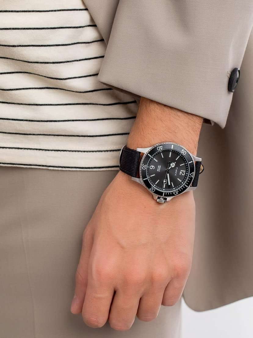 Часы Timex TW2V27000 — это стильный аксессуар, сочетающий в себе элегантность и функциональность, который станет прекрасным дополнением к вашему образу. Эти часы произведены в США и оснащены надежным кварцевым механизмом, обеспечивающим точность хода. Корпус выполнен из нержавеющей стали, что придает изделию прочность и долговечность. Черный циферблат украшен метками в виде штрихов и арабских цифр, а также оснащен подсветкой Indiglo, стрелки часов также с люминесцентным покрытиемЛюминесцентное покрытиеПозволяет считывать показания времени в темноте. Производители наносят на стрелки, часовые индексы, безель или поверхность циферблата светонакопительный состав, дающий холодное свечение., что позволяет легко считывать время в темноте. Минеральное стеклоМинеральное стеклоМинеральное стекло представляет собой искусственно выращенный минерал кварца. Такое стекло отличается особой устойчивостью к повреждениям и царапинам. Уступает по некоторым качествам сапфировому стеклу. защищает циферблат от царапин и повреждений. А вращающийся безельБезельВнешний ободок, закрепляющий стекло. В спортивных часах так называется поворотное кольцо с делениями на циферблате, выполняет роль таймера – замеряет отрезки времени на шкале. Неподвижный безель – элемент декора. Однонаправленно вращающийся безель на дайверских часах позволяет фиксировать моменты погружения и выныривания на поверхность. этих часов с черным PVDPVDУльтратонкое покрытие наносится в технике вакуумного напыления, сочетает в себе нитрид титана особой прочности со слоем золота или оксида хрома. Несёт в себе декоративную или защитную функцию. покрытием, что придает им современный и устойчивый к износу вид. Кожаный ремешок с классической застежкой обеспечивает комфортное ношение в течение всего дня. Водозащита уровня 50WR позволяет не беспокоиться о случайных брызгах или кратковременном контакте с водой. Кроме того, часы оснащены календарем, отображающим текущее число, что добавляет дополнительное удобство в использовании. Габаритные размеры корпуса составляют 42 мм в диаметре, а ширина ремешка — 18 мм, что делает эти часы идеальными для повседневного ношения.