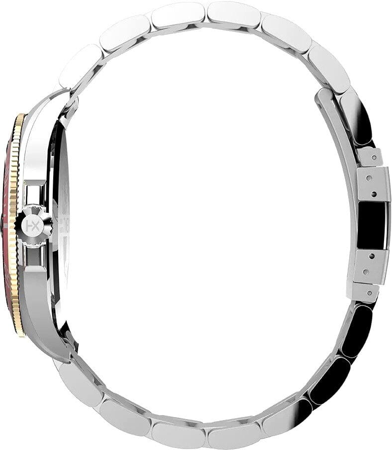 Часы Timex TW2V27400 — это воплощение современного стиля и практичности, которые придутся по вкусу любому ценителю качественных аксессуаров. Изготовленные в США, эти часы обладают кварцевым механизмом, обеспечивающим высокую точность и надежность в эксплуатации. Корпус изготовлен из латуни, что придает ему дополнительную прочность и стильный внешний вид. Черный циферблат украшен метками в виде точек и штрихов, что обеспечивает легкость в считывании времени. Стрелки и метки с люминесцентным покрытиемЛюминесцентное покрытиеПозволяет считывать показания времени в темноте. Производители наносят на стрелки, часовые индексы, безель или поверхность циферблата светонакопительный состав, дающий холодное свечение. обеспечивают отличную видимость в темноте после небольшой экспозиции на свету. Окошко даты с увеличительным стеклом расположено на удобной позиции, что делает процесс чтения информации быстрым и комфортным. Водозащита 100WR делает эти часы надежными спутниками для активного образа жизни, включая плавание и другие водные активности. Вращающийся безельБезельВнешний ободок, закрепляющий стекло. В спортивных часах так называется поворотное кольцо с делениями на циферблате, выполняет роль таймера – замеряет отрезки времени на шкале. Неподвижный безель – элемент декора. Однонаправленно вращающийся безель на дайверских часах позволяет фиксировать моменты погружения и выныривания на поверхность. с IP-покрытиемIP-покрытиеМетод ионного напыления. Демонстрирует повышенную устойчивость к истиранию, окислению и химическим веществам. Под воздействием высокого давления и температуры около 1500°C молекулы металла надёжно соединяются с частицами корпуса часов. красного и золотистого цвета добавляет функциональности, а минеральное стеклоМинеральное стеклоМинеральное стекло представляет собой искусственно выращенный минерал кварца. Такое стекло отличается особой устойчивостью к повреждениям и царапинам. Уступает по некоторым качествам сапфировому стеклу. защищает циферблат от царапин и повреждений. Часы оснащены стальным браслетом с раскладной застёжкойРаскладная застёжкаТакой тип застёжки используется только на браслетах из металла. Она никогда не раскрывается полностью, происходит разделение на 2 и более частей. Раскладывающая застёжка снизит вероятность потери часов к минимуму., обеспечивая надежную фиксацию на запястье и удобство в повседневном ношении. Рифленая заводная головка с защитой и стальная задняя крышка подчеркивают внимание к деталям и долговечность конструкции. С диаметром корпуса 43 мм и шириной браслета 20 мм, эти часы станут стильным дополнением к образу современного человека, сочетая в себе элегантность и функциональность.