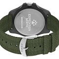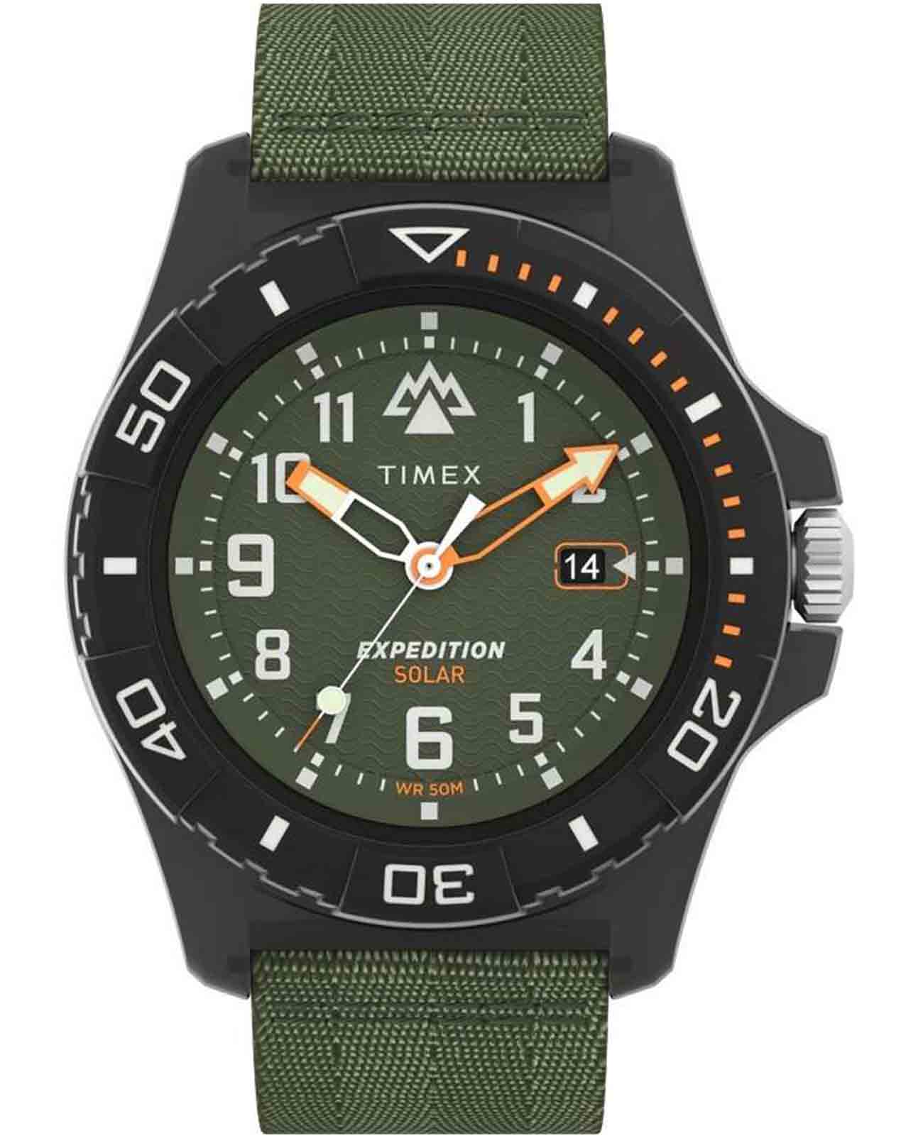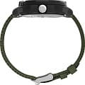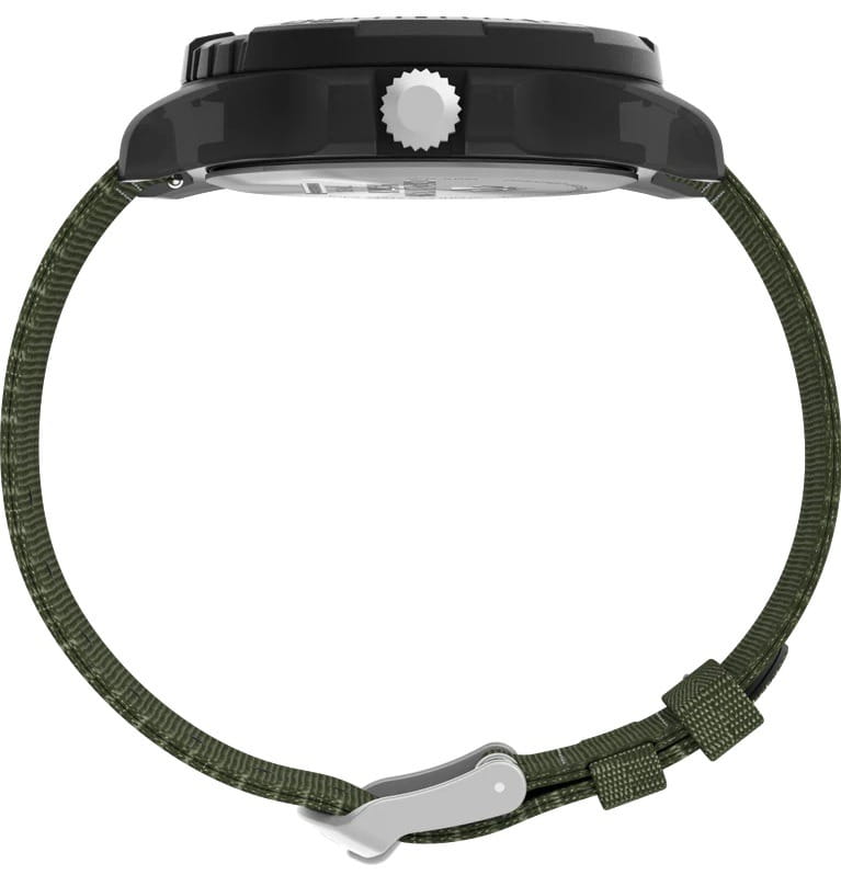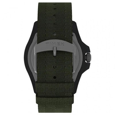 Мужские наручные часы Timex TW2V40400 — идеальный аксессуар для современных мужчин, ценящих стиль и функциональность. Эти часы произведены в США и оснащены надежным кварцевым механизмом, который гарантирует точность и долговечность. Корпус часов выполнен из прочного пластика, что придает им современный и эргономичный вид. Диаметр корпуса составляет 46 мм, а толщина — 13 мм, что делает их заметными и стильными. А вращающийся безельБезельВнешний ободок, закрепляющий стекло. В спортивных часах так называется поворотное кольцо с делениями на циферблате, выполняет роль таймера – замеряет отрезки времени на шкале. Неподвижный безель – элемент декора. Однонаправленно вращающийся безель на дайверских часах позволяет фиксировать моменты погружения и выныривания на поверхность. этих часов черного цвета, что придает им современный и устойчивый к износу вид.  Циферблат насыщенного зеленого цвета оснащен фирменной подсветкой Indiglo, обеспечивающей отличную читаемость в темноте. Стрелки с люминесцентным покрытиемЛюминесцентное покрытиеПозволяет считывать показания времени в темноте. Производители наносят на стрелки, часовые индексы, безель или поверхность циферблата светонакопительный состав, дающий холодное свечение. и арабские цифры на метках также светятся, что позволяет без труда определять время даже в условиях низкой освещенности. Водозащита на уровне 50 WR позволяет не беспокоиться о случайных контактах с водой, таких как дождь или случайные брызги. Минеральное стеклоМинеральное стеклоМинеральное стекло представляет собой искусственно выращенный минерал кварца. Такое стекло отличается особой устойчивостью к повреждениям и царапинам. Уступает по некоторым качествам сапфировому стеклу. надежно защищает циферблат от царапин и повреждений. Окошко даты, расположенное в позиции 3 часа, добавляет удобства в повседневном использовании. Часы комплектуются тканевым ремешком с шириной 22 мм и классической застежкой, что обеспечивает комфортное ношение и надежную фиксацию на запястье. Рифленая заводная головка с защитой подчеркивает внимание к деталям и практичность дизайна.