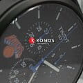 Расставлены оранжевые и синие цветовые акценты, чёрный циферблат украшен логотипом команды, такой аксессуар станет лучшим подарком для фанатов NBA. Идеально смотрится ремешок из натуральной кожи с перфорацией, задняя крышка дополнена эмблемой NBA. Высокоточный кварцевый механизм ETA G10.212. Чёрное PVD-покрытиеPVDУльтратонкое покрытие наносится в технике вакуумного напыления, сочетает в себе нитрид титана особой прочности со слоем золота или оксида хрома. Несёт в себе декоративную или защитную функцию. стального корпуса. Водонепроницаемость при давлении 10 бар. Люминесцентная подсветкаЛюминесцентное покрытиеПозволяет считывать показания времени в темноте. Производители наносят на стрелки, часовые индексы, безель или поверхность циферблата светонакопительный состав, дающий холодное свечение.. ХронографХронографФункция позволяет измерять отрезки времени с особой точностью: часы, минуты, секунды. Верным признаком хронографа является наличие на циферблате 3 дополнительных окошек-счётчиков., секундомер, индикация текущего числа. Габариты: 45 x 45 x 11 мм.