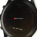 Дизайнеры делают ставку на оригинальный ремешок с характерной прострочкой, он сделан из натуральной кожи. Модель относится к числу самых больших хронографов среди всей продукции Tissot, диаметр их корпуса имеет внушительный размер - 45 мм. Кварцевый калибр ETA G10.212 с 4 камнями. Корпус из хирургической стали с чёрным PVD-покрытием. Хронограф, секундомер, окошко даты. Габариты: 45 x 45 x 11 мм.