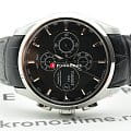 Их строгий и солидный вид сочетает в себе классические и спортивные элементы. Часы с системой автоматического завода имеют прозрачную заднюю крышку, такая особенность позволяет наблюдать за неторопливым движением деталей механизма. Сапфировое стекло с антибликовым покрытием. Водонепроницаемость 100 метров. Прочный ремешок из натуральной кожи. Корпус из стали с антикоррозионными свойствами. Функционал: хронограф, календарь, секундомер. Габариты: 43 x 43 x 14,8 мм.