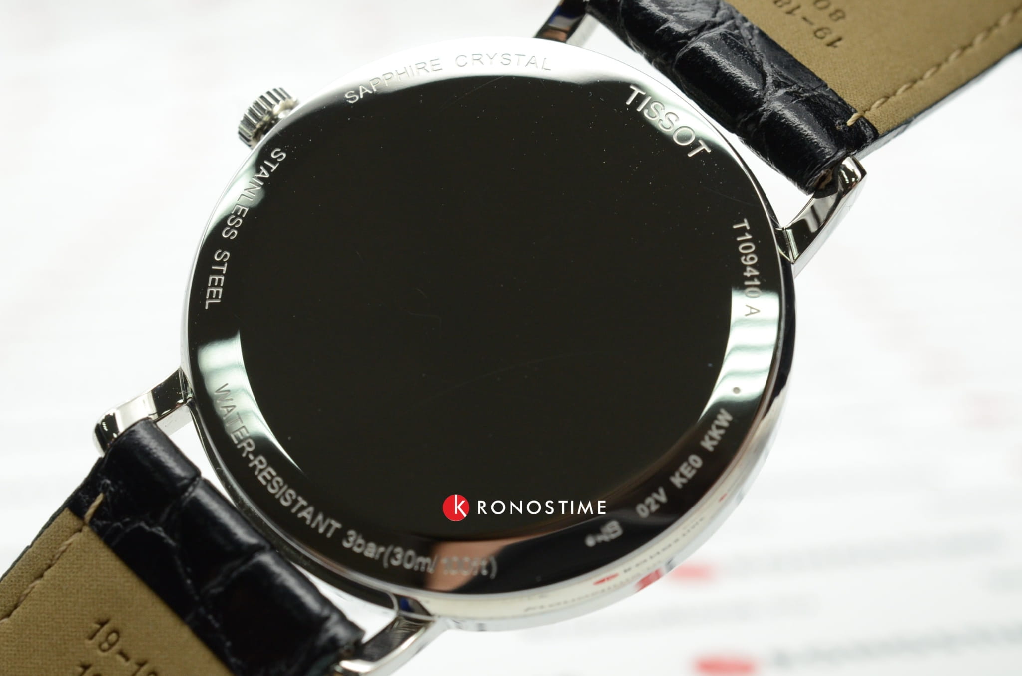 Часы отличаются высоким швейцарским качеством, они оснащены кварцевым механизмом ETA 902.101. Чёрный ремешок из натуральной кожи с тиснением под кожу крокодила отлично гармонирует с белым циферблатом. Корпус из хирургической стали 316L с антикоррозионными свойствами. Стекло из сапфира препятствует появлению царапин на поверхности. Водонепроницаемость при давлении 3 бар. Габариты: 38 x 38 x 6,5 мм.