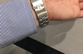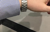 Оригинальный стальной браслет с акцентом на продольные звенья светлого оттенка приятно ощущается на запястье, не вызывает дискомфорта. Имеет раскладную застежку с кнопками. Модель обладает прочным герметичным корпусом, который сохраняет водонепроницаемость при давлении до 10 бар. Кварцевый калибр ETA F06.111. Функции: EOL, отображение текущей даты. Габариты: 39 x 39 x 9 мм.