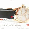 Минималистичный циферблат с узором инкрустирован бриллиантами, имеющими законное происхождение. На светлом фоне идеально смотрятся тонкие стрелки в виде лепестков. Часы имеют PVD-покрытиеPVDУльтратонкое покрытие наносится в технике вакуумного напыления, сочетает в себе нитрид титана особой прочности со слоем золота или оксида хрома. Несёт в себе декоративную или защитную функцию. цвета розового золота. Внутри корпуса находится кварцевый механизм ETA F04.111 с высокой точностью хода. Сапфировое стекло. . Ремешок из натуральной кожи. Функция EOLEOLПредставляет собой систему, уведомляющую владельца часов о необходимости замены элемента питания. За 2 недели до полного разряда батарейки секундная стрелка перестаёт ходить чётко и начинает перепрыгивать на 3-4 деления.. Габариты: 30 x 30 x 8,7 мм.