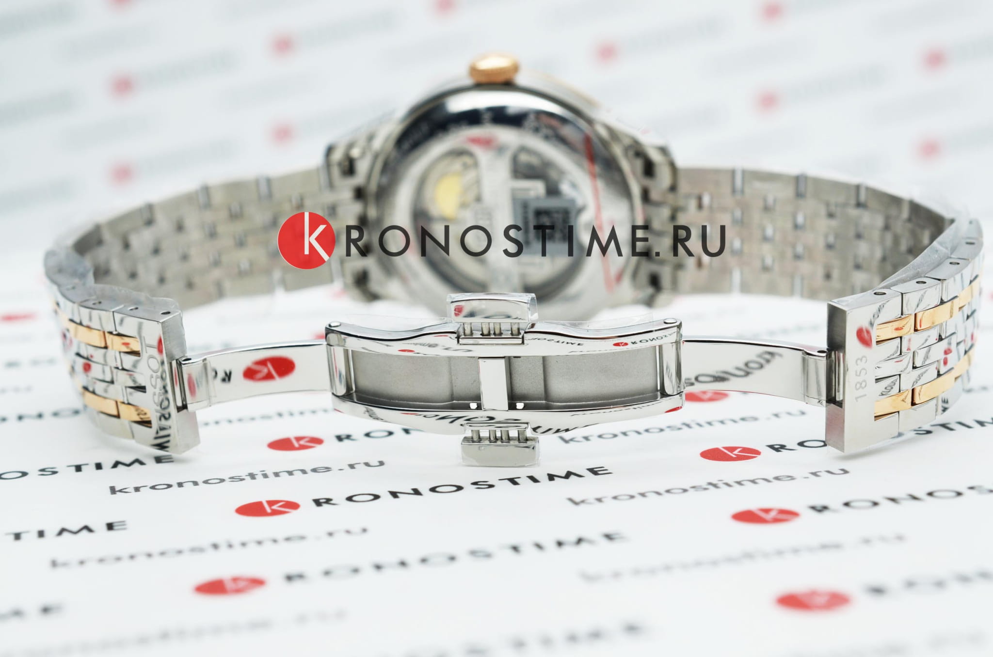 Аксессуар обладает индивидуальными деталями, присущими данной коллекции. Узорчатый циферблат, задняя крышка с причудливым орнаментом, тонкие стрелки и римские цифры. На корпус и продольные звенья браслета нанесено PVD-покрытиеPVDУльтратонкое покрытие наносится в технике вакуумного напыления, сочетает в себе нитрид титана особой прочности со слоем золота или оксида хрома. Несёт в себе декоративную или защитную функцию. цвета розового золота. Автоматический калибр Powermatic 80Powermatic 80Эксклюзивный калибр от швейцарской компании ETA с увеличенным запасом хода до 80 часов за счёт удлинённой заводной пружины. Характеризуется улучшенной системой спуска со сниженным трением. с запасом хода 80 часов. Сапфировое стеклоСапфировое стеклоПрочный и надёжный материал из кристалла сапфира синтетического происхождения, характеризующийся особой твёрдостью и устойчивостью к царапинам и повреждениям. обладающее высокой прозрачностью. Застёжка бабочка с кнопкамиЗастёжка "бабочка"Такой вид застёжки дополняется предохранителями, помогающими избежать случайного раскрытия браслета. Обладают изящным исполнением.