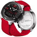Наручные часы отличаются ярким исполнением, органично смотрятся оранжевый и чёрный цвет. Они имеют сенсорное сапфировое стеклоСапфировое стеклоПрочный и надёжный материал из кристалла сапфира синтетического происхождения, характеризующийся особой твёрдостью и устойчивостью к царапинам и повреждениям., позволяющее управлять всеми функциональными возможностями аксессуара. Среди них хронографХронографФункция позволяет измерять отрезки времени с особой точностью: часы, минуты, секунды. Верным признаком хронографа является наличие на циферблате 3 дополнительных окошек-счётчиков., компас, календарь приливов и отливов, GMTGMTОтображение времени второго часового пояса.Такая функция особенно актуальна для путешественников и бизнесменов,которые общаются с людьми из разных стран,теперь вы всегда будете знать,какой час у вашего партнёра или близкого человека., таймерТаймерОтсчитывает секунды в обратном направлении в заданном интервале времени., будильник. Модель поможет не растеряться в путешествии и выдерживать городской ритм. Кварцевый швейцарский механизм ETA E49.301. Водостойкость 10 бар. Прочный каучуковый ремешок. Габариты: 42,15 x 42,15 x 13,5 мм.