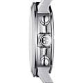Эффектное чёрно-серебристое исполнение модели делает её идеальным вариантом для дополнения любого образа. Спортивный хронографХронографФункция позволяет измерять отрезки времени с особой точностью: часы, минуты, секунды. Верным признаком хронографа является наличие на циферблате 3 дополнительных окошек-счётчиков. обладает водонепроницаемостью при давлении 20 бар на глубине 200 метров, часы подходят для плавания и дайвинга. Кварцевый калибр ETA G10.211. Хирургическая сталь 316 L. Завинчивающаяся заводная головка и задняя крышка. Секундомер, тахиметрТахиметрРазмеченная шкала, располагается на ободке или безеле часов. Тахиметр позволяет рассчитать скорость на определённом участке пути, расстояние измеряется в километрах или милях., апертура даты. Габариты: 43 x 42 x 12 мм.
