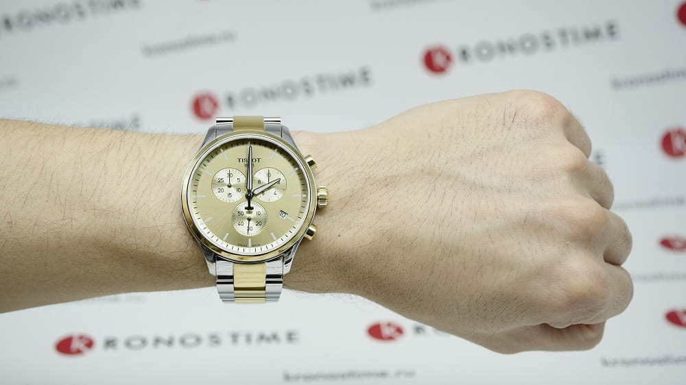 Мужской хронографХронографФункция позволяет измерять отрезки времени с особой точностью: часы, минуты, секунды. Верным признаком хронографа является наличие на циферблате 3 дополнительных окошек-счётчиков. не только позволяет измерять временные промежутки с особой точностью, но и выполняет роль элегантного аксессуара. Циферблат цвета шампань сразу бросается в глаза, три дополнительных счётчика привносят в общий облик модели спортивный стиль. Наручные часы изготовлены из нержавеющей стали с PVD-покрытиемPVDУльтратонкое покрытие наносится в технике вакуумного напыления, сочетает в себе нитрид титана особой прочности со слоем золота или оксида хрома. Несёт в себе декоративную или защитную функцию., тяжесть материала приятно ощущается на запястье и не доставляет неудобств. Кварцевый механизм ETA G10.212. Люминесцентная подсветка. Высокие показатели водозащиты. Габариты: 45 x 45 x 11 мм. Производство и сборка: Швейцария.