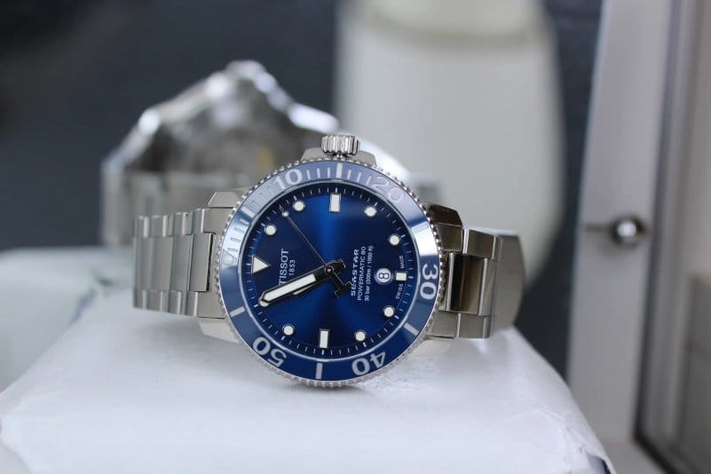Мужские наручные часы из коллекции Seastar 1000 пригодятся любителям подводных погружений благодаря высоким показателям водонепроницаемости - 30 бар на глубине 300 метров.