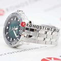 На фоне серебристого браслета и темного безеляБезельВнешний ободок, закрепляющий стекло. В спортивных часах так называется поворотное кольцо с делениями на циферблате, выполняет роль таймера – замеряет отрезки времени на шкале. Неподвижный безель – элемент декора. Однонаправленно вращающийся безель на дайверских часах позволяет фиксировать моменты погружения и выныривания на поверхность. ярко выделяется зеленый циферблат, отлично видны серебристые стрелки и часовые метки с люминесцентным покрытиемЛюминесцентное покрытиеПозволяет считывать показания времени в темноте. Производители наносят на стрелки, часовые индексы, безель или поверхность циферблата светонакопительный состав, дающий холодное свечение.. Механические часы с автоподзаводом оснащены швейцарским механизмом Powermatic 80Powermatic 80Эксклюзивный калибр от швейцарской компании ETA с увеличенным запасом хода до 80 часов за счёт удлинённой заводной пружины. Характеризуется улучшенной системой спуска со сниженным трением. с запасом хода 80 часов. Завинчивающиеся кнопки, головка, прозрачная задняя крышка. Сапфировое стекло. Апертура даты. Габариты: 43 x 43 x 12,7 мм.