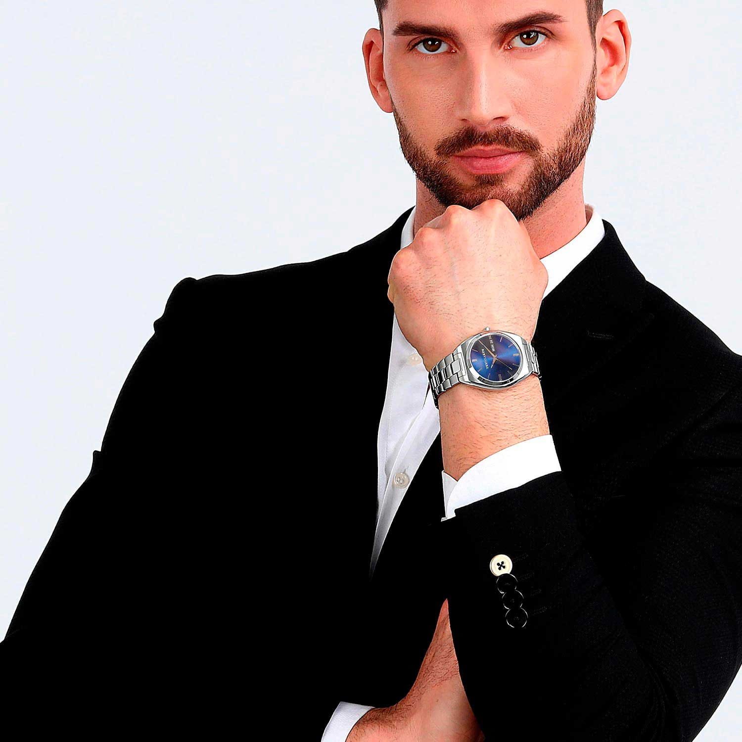 Итальянские мужские часы Trussardi Metropolitan R2453159005 - это стильный мужской аксессуар, который сочетает элегантный дизайн и практичность. Корпус выполнен из нержавеющей стали, что обеспечивает долговечность и утончённый внешний вид. Надежное минеральное стеклоМинеральное стеклоМинеральное стекло представляет собой искусственно выращенный минерал кварца. Такое стекло отличается особой устойчивостью к повреждениям и царапинам. Уступает по некоторым качествам сапфировому стеклу. защищает циферблат от царапин и обеспечивает долговечность. Модель оснащена кварцевым механизмом, обеспечивающим высокую точность хода. Браслет из нержавеющей стали с раскладной застёжкойРаскладная застёжкаТакой тип застёжки используется только на браслетах из металла. Она никогда не раскрывается полностью, происходит разделение на 2 и более частей. Раскладывающая застёжка снизит вероятность потери часов к минимуму. обеспечивает комфортное ношение. Водозащита 50 метров позволит защитить корпус от случайных брызг или капель дождя. Окошко даты и дня недели в положении 3 часов. Стрелки оснащены люминесцентным покрытиемЛюминесцентное покрытиеПозволяет считывать показания времени в темноте. Производители наносят на стрелки, часовые индексы, безель или поверхность циферблата светонакопительный состав, дающий холодное свечение., обеспечивающим отличную видимость даже при слабом освещении. Эта модель – отличный выбор для тех, кто ищет сочетание стиля, качества и функциональности. Часы станут не только полезным аксессуаром, но и выразительным элементом вашего имиджа.