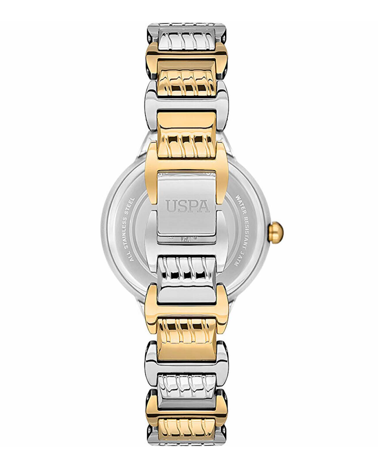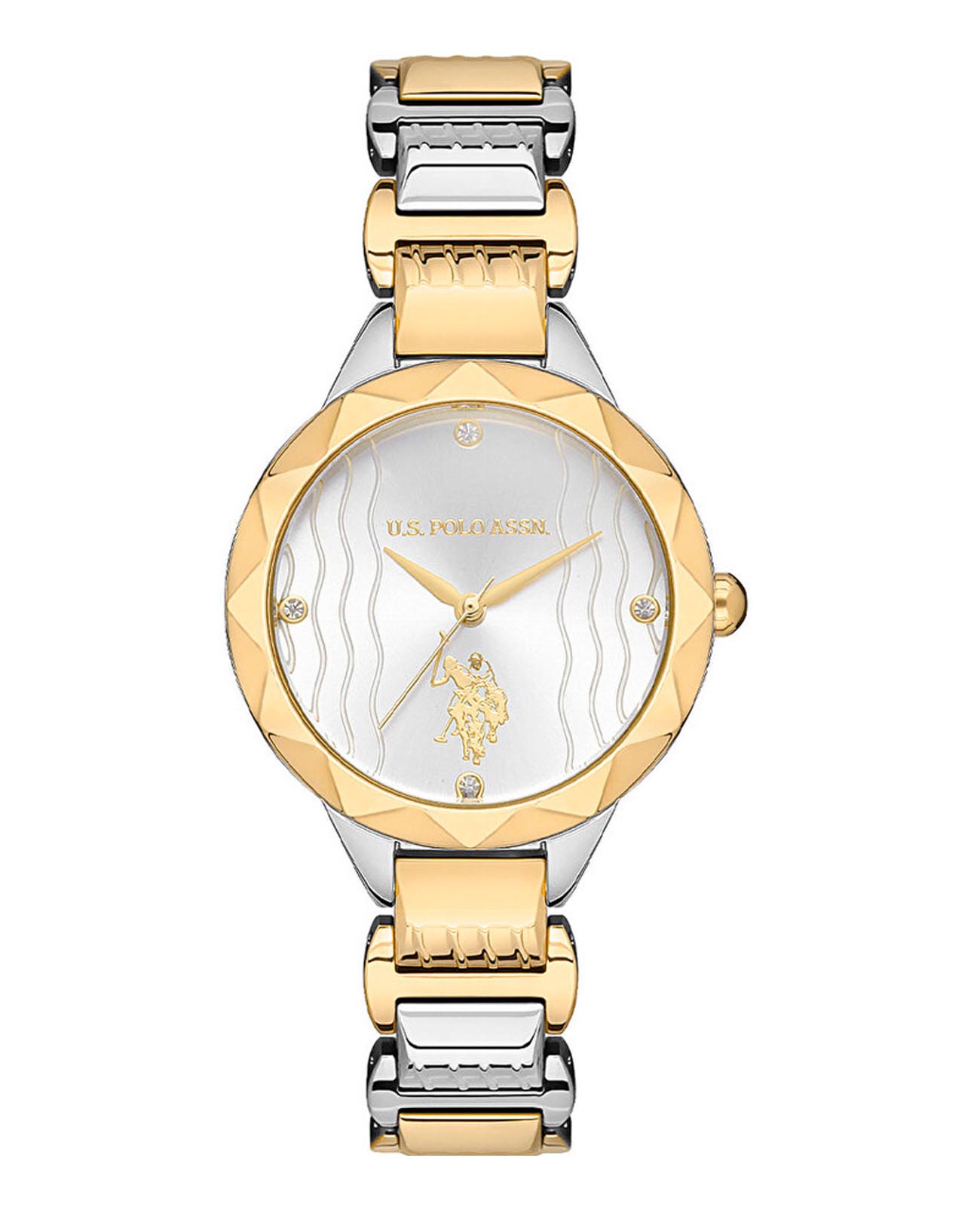 Женские часы U.S. Polo Assn Stile USPA2046-05, кварцевый механизм с высокой точностью. Минеральное стеклоМинеральное стеклоМинеральное стекло представляет собой искусственно выращенный минерал кварца. Такое стекло отличается особой устойчивостью к повреждениям и царапинам. Уступает по некоторым качествам сапфировому стеклу. устойчивое к появлению царапин, обладающее высокой прозрачностью. Корпус изготовлен из нержавеющей стали. БезельБезельВнешний ободок, закрепляющий стекло. В спортивных часах так называется поворотное кольцо с делениями на циферблате, выполняет роль таймера – замеряет отрезки времени на шкале. Неподвижный безель – элемент декора. Однонаправленно вращающийся безель на дайверских часах позволяет фиксировать моменты погружения и выныривания на поверхность. с IP-покрытиемIP-покрытиеМетод ионного напыления. Демонстрирует повышенную устойчивость к истиранию, окислению и химическим веществам. Под воздействием высокого давления и температуры около 1500°C молекулы металла надёжно соединяются с частицами корпуса часов.. Циферблат украшен кристаллами. Класс водозащиты: 50 метров, позволит защитить корпус от случайных брызг или капель дождя. Стальной браслет с частичным IP-покрытиемIP-покрытиеМетод ионного напыления. Демонстрирует повышенную устойчивость к истиранию, окислению и химическим веществам. Под воздействием высокого давления и температуры около 1500°C молекулы металла надёжно соединяются с частицами корпуса часов. на ювелирной застёжке.
