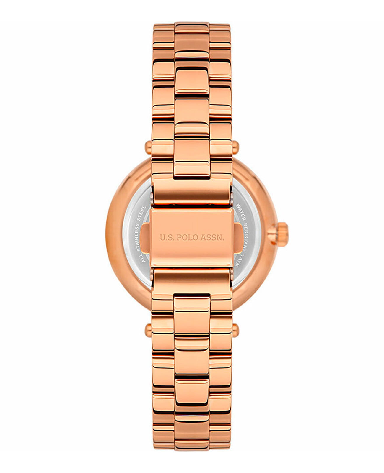 Женские часы U.S. Polo Assn Stile USPA2048-01, кварцевый механизм с высокой точностью. Минеральное стеклоМинеральное стеклоМинеральное стекло представляет собой искусственно выращенный минерал кварца. Такое стекло отличается особой устойчивостью к повреждениям и царапинам. Уступает по некоторым качествам сапфировому стеклу. устойчивое к появлению царапин, обладающее высокой прозрачностью. Корпус изготовлен из нержавеющей стали с IP-покрытиемIP-покрытиеМетод ионного напыления. Демонстрирует повышенную устойчивость к истиранию, окислению и химическим веществам. Под воздействием высокого давления и температуры около 1500°C молекулы металла надёжно соединяются с частицами корпуса часов.. Циферблат украшен кристаллами. Класс водозащиты: 30 метров, позволит защитить корпус от случайных брызг или капель дождя. Стальной браслет с IP-покрытиемIP-покрытиеМетод ионного напыления. Демонстрирует повышенную устойчивость к истиранию, окислению и химическим веществам. Под воздействием высокого давления и температуры около 1500°C молекулы металла надёжно соединяются с частицами корпуса часов. на раскладной застёжкеРаскладная застёжкаТакой тип застёжки используется только на браслетах из металла. Она никогда не раскрывается полностью, происходит разделение на 2 и более частей. Раскладывающая застёжка снизит вероятность потери часов к минимуму..